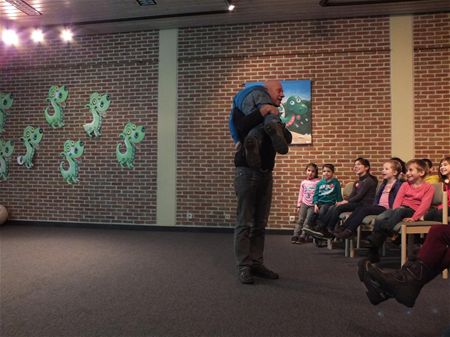 Deze week is jeugdauteur Bart Demyttenaere vier dagen te gast in de bibliotheek. Hij trakteert alle leerlingen van het eerste leerjaar en hun ouders of grootouders op een leuke voorstelling. Bart voert één van zijn dinoverhalen op als een echte theatershow. Daarna kiezen de kinderen een boek samen met hun familie of leerkracht. De kinderen lezen thuis het boek en brengen het zelf terug naar de bib12435