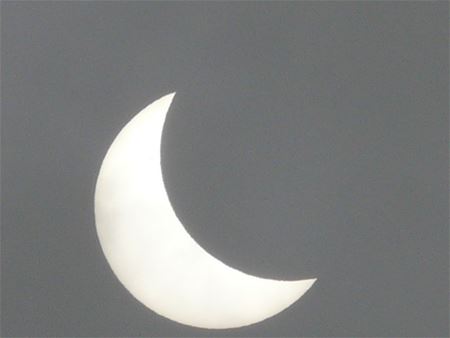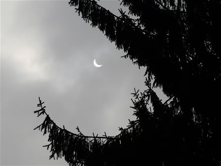 We blijven maar foto's binnenkrijgen van de eclips, en geef toe, 't is geen alledaags verschijnsel en dus mag het ook wat extra aandacht krijgen. Jean Vandevoort bekeek het fenomeen vanuit Heusden en Greta Feher laat ons zien hoe het er door een lasbril uitzag (rechts onder).19882