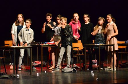 Vandaag was het de beurt aan Kunstverkenner Junior om het theaterpodium in Muze in te nemen. Zij hadden liefst twee voorstellingen uitgewerkt: Het paard van Troje en Puberleed. Daarbij hadden de jonge acteurs ook niet voor de gemakkelijkste voorstellingen gekozen. (foto's Patrick Daniëls)39998