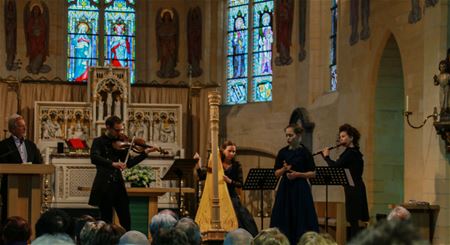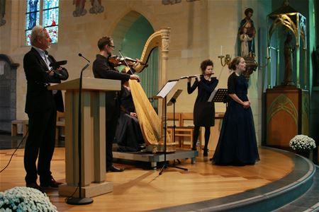 Een heel bijzonder concert dat Muze vandaag in de Sint-Vincentiuskerk organiseerde: Shelter. Revue Blanche trad sowieso al op in een ongewone bezetting waarmee het muziek rond de oorlog van een rist componisten uitvoerde. Dat werd dan nog aangevuld met teksten die auteur Stefan Hertmans voorlas uit zijn bekroond boek 'Oorlog en Terpetijn'. (foto's Ria De Clerck)37047