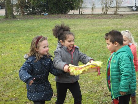 De laatste dag voor de paasvakantie organiseert kleuterschool Pagadder steevast een paasspel. Ook vandaag kregen de kleuters weer een heleboel opdrachten om de paashaas te helpen met zijn taken: eieren versieren, eieren verstoppen en rapen, koken met eieren, de vogeltjesdans doen en zelfs wetenschappelijke proeven met eieren. Maar ook stonden ze stil bij Goede Vrijdag en luisterden naar het lijdensverhaal van Jezus. Maar de finale was toch wel ... de zoektocht naar lekkere chocoladen eieren. (foto's Ann Gijbels)39549