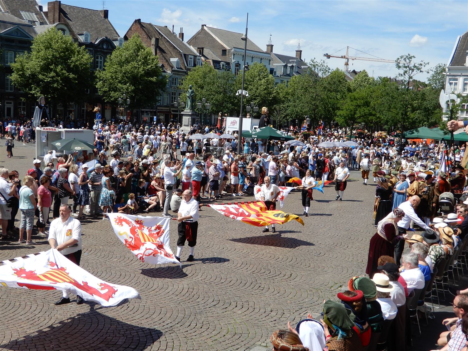 Maastricht vierde de 50ste verjaardag van zijn reus Gigantus. Lambert Hoelen, de reus van Bolderberg mocht fier mee marcheren in het gezelschap van hoogwaardigheidsbekleders, begeleid door zijn vendeliers van de Landaue, zijn muzikanten van de Verenigde Vrienden en zijn hofhouding in vol ornaat. Ze waren trouwens in goed gezelschap van de buren … ja, zelfs de Hasselaren hadden zich laten overhalen om uitzonderlijk de Langeman Don Christophe, buiten de stadsgrens te laten gaan. En nu maar uitkijken naar het bezoek van de reuzen aan Bovy, op 21 juli. (foto’s Julien Maebe)46969