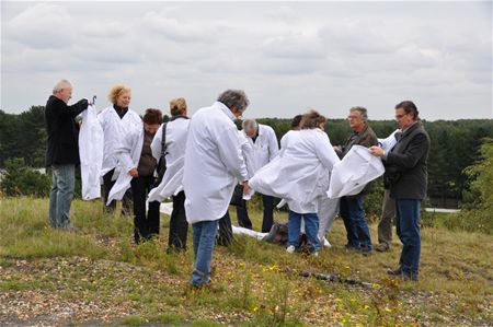 Al even over één uur vanmiddag arriveerden de eersten aan de voet van de mijnterril voor de foto. Van dan af bleven de families en verenigingen toestromen. Heel wat deelnemers kwamen met de fiets. Sommigen zoals gevraagd in 't wit, anderen moesten zich op de terril nog in witte outfit hijsen, nog anderen kwamen in uniform zoals scouts en speelpleinwerking, Akkermennenekes, KAV, ... Ook burgemeester, schepenen en gemeenteraadsleden waren van de partij. En de stemming zat er van bij het begin in. Meer foto's van de voorbereiding