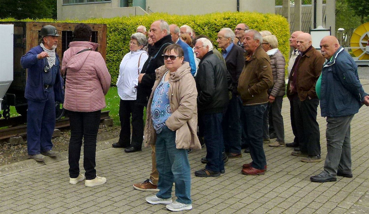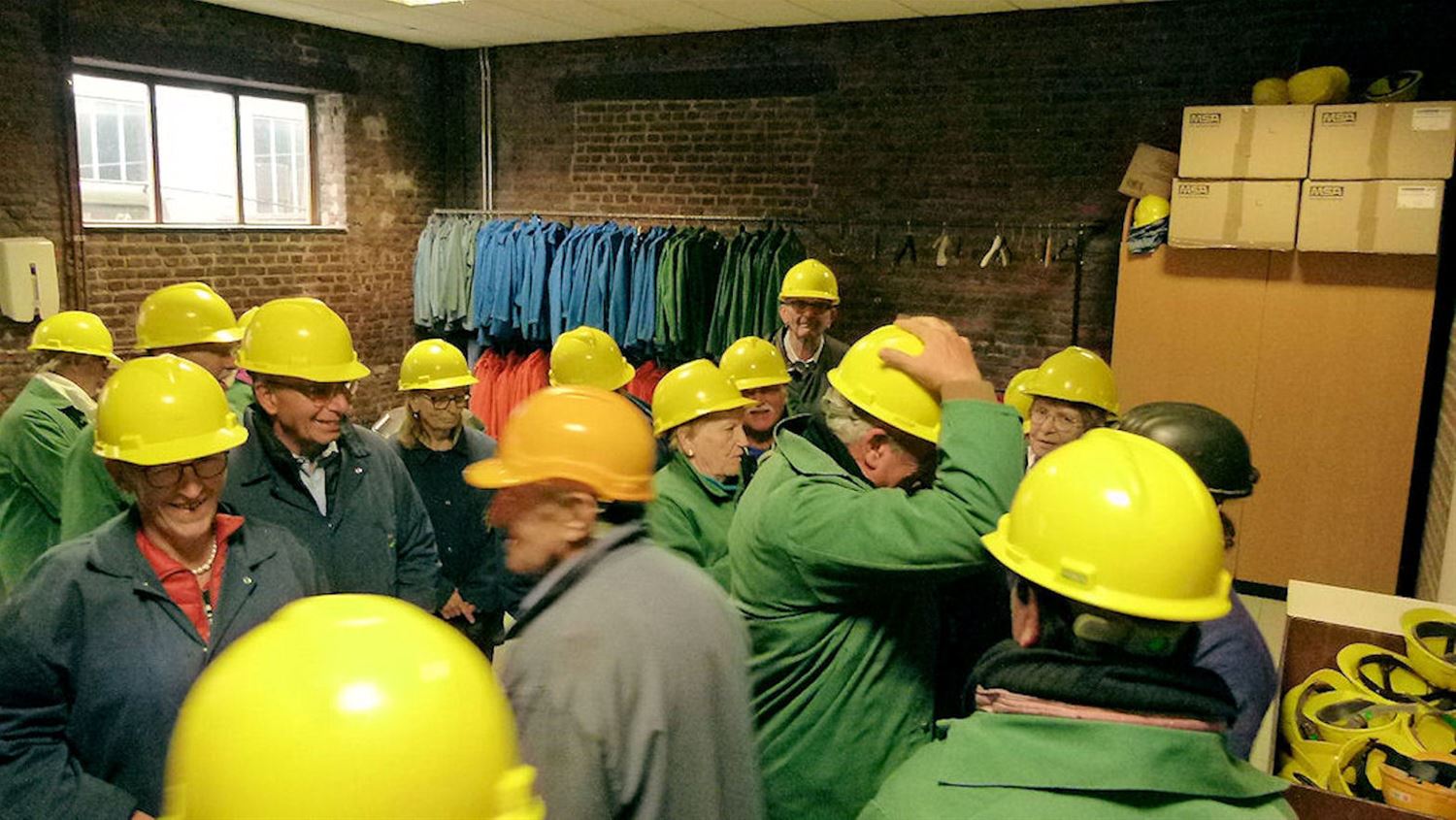 De senioren van De Zandloper maakten gisteren een mooie uitstap naar de mijn van Blegny. De zon was niet van de partij maar een mijnstreek mag best een beetje grauw ogen. Er waren liefst 120 deelnemers, twee volle bussen. Van Herstal ging het met de boot naar Visé, vanwaar een toeristisch treintje richting Blegny tufte. Met de typische ‘boulettes à la Liégioise’ in de maag, was het gezelschap gewapend voor een namiddag in het museum en een ondergronds bezoek – tot 60 meter – met de originele liftkooien. Bij sommige deelnemers borrelde de nostalgie op. (foto's Freddy De Block)46866
