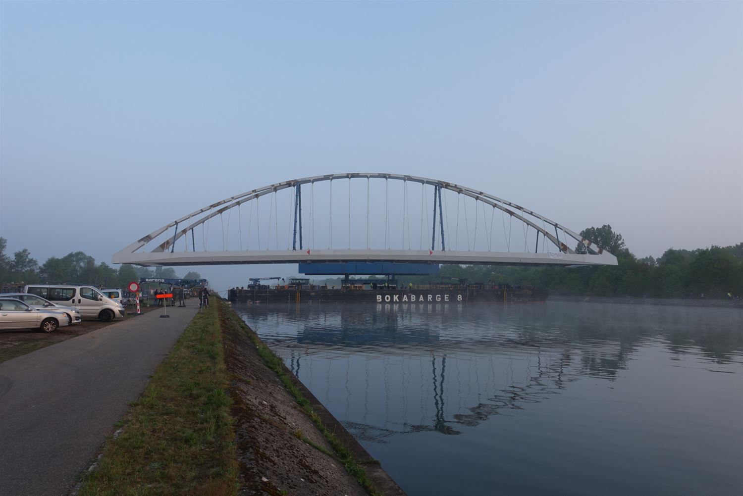 Tweede keer goede keer. Vanochtend vroeg, in een nevelig decor, is de tweede poging om de nieuwe brug over het kanaal in Stokrooie in te varen en op haar plaats te brengen, wel gelukt. Er waren heel wat geïnteresseerden opgedaagd die op de voorziene uitkijkplaatsen stonden. De brug kan nu verder afgewerkt worden en de komende maanden wordt ze aangesloten op de weg tussen Kuringen en Bolderberg. De Kanaalstraat kan ook terug opengaan voor wie vanuit Heusden-Zolder naar Hasselt rijdt. (foto’s Peter Tielens)46644