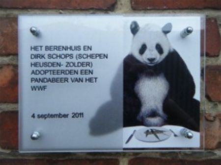 Net na zijn vijftigste verjaardag ontving schepen van jeugd Dirk Schops een adoptiebrief van het Wereldnatuurfonds, hj had een pandabeer geadopteerd. Na bemiddeling van het Berenhuis. Ondertussen is ook het bijhorende bordje geleverd en met de nodige plichtplegingen aan het Berenhuis bevestigd. Zo is Heusden-Zolder voorgoed gelinkt aan één van de 1.600 Chrinese panda's die nog overleven in het wild.8634
