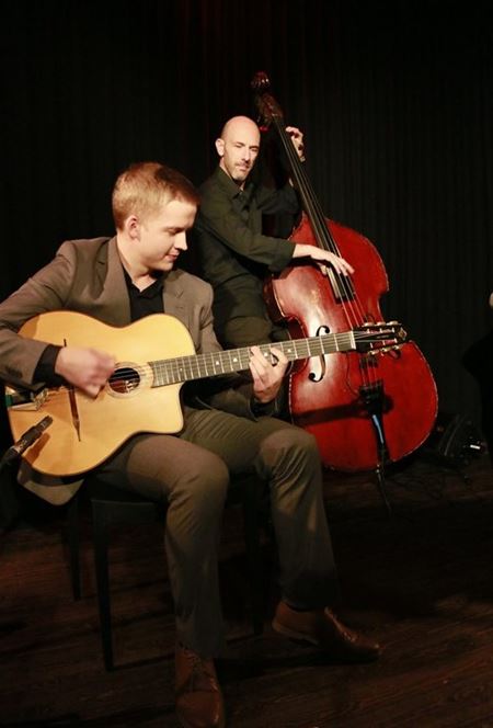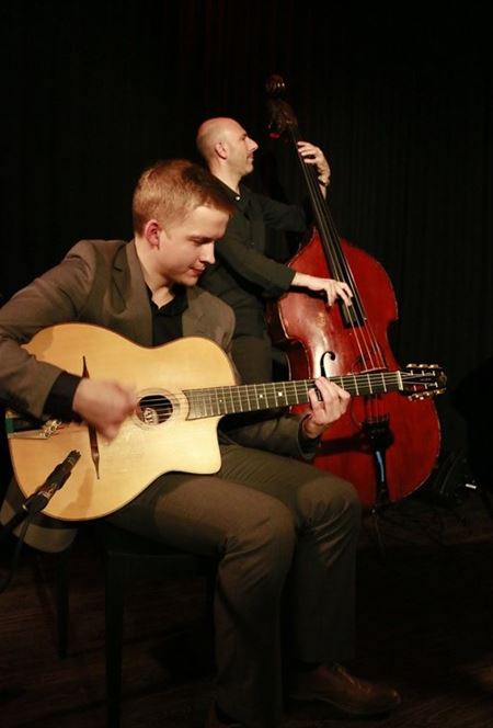 Zondagavond stond Hot Club d'Europe op het kleine podium van het Muzecafé en volgens toehoorders zijn daar nooit eerder 2 sologitaristen op zo'n unieke manier samen bezig geweest. Het was telkens zoeken wie het ritme en wie de solo aan het spelen was. De Finse Olli helemaal in samenspel met Paulus en Arnoud , de bassist die het cement vormde tussen deze 2 Djangofolies-gitaristen. Samen zorgden ze voor een unieke belevenis. (foto's Ria De Clerck)18372