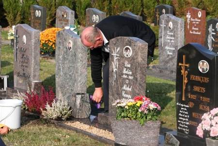 Door het mooie weer was het vandaag al bijzonder druk op de kerkhoven (foto's op het kerkhof van Heusden-Centrum). Velen kwamen langs om de grafstenen van hun overledenen een laatste poetsbeurt te geven, of om de chrysanten alvast te plaatsen. Anderen lopen wat te mijmeren, tijdens de grote Allerheiligentoeloop het immers te druk daarvoor.