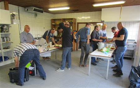 De kookmannen van KWB-Berkenbos hielden een barbecue, en dat in het tweede deel van de maand oktober. Ze bereidden een 5-tal gerechten waarmee ze de smaakpapillen van de echtgenotes konden strelen. Het dessert was al even zomers en met een 'afdronk' werd geklonken op wat de komende jaren misschien nog komen gaat ... (foto's Ludo Vanherle)43501