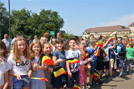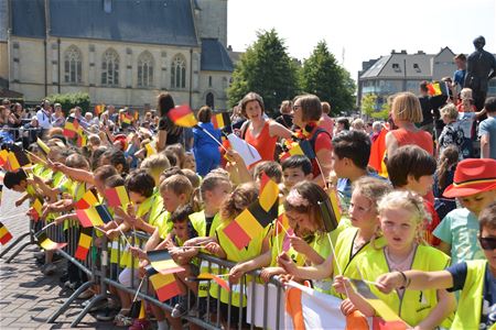 Met een koninklijk bezoek gaat natuurlijk heel wat gepaard zoals een maandenlange voorbereiding. Vanmorgen moest het gemeentepersoneel nog snel met de bladblazer en borstel in het rond gaan, terwijl de nadar een laatste keer werd gecheckt. In het gemeentehuis werden de verse bloemen aangebracht en de drank koel gezet. Het was voor het personeel geen dag als een ander. Tegen de middag kwamen de scholen aan, de bejaarden van De Bloemelingen, en de gasten van onder meer 't Weyerke. Iedereen beleefde een onvergetelijke dag. Maar het meest memorabele moment was de 'sprong' van de koningin over de nadar om zich tussen de bejaarden van De Bloemelingen te begeven. (meer foto's van Marina Poelmans)40111