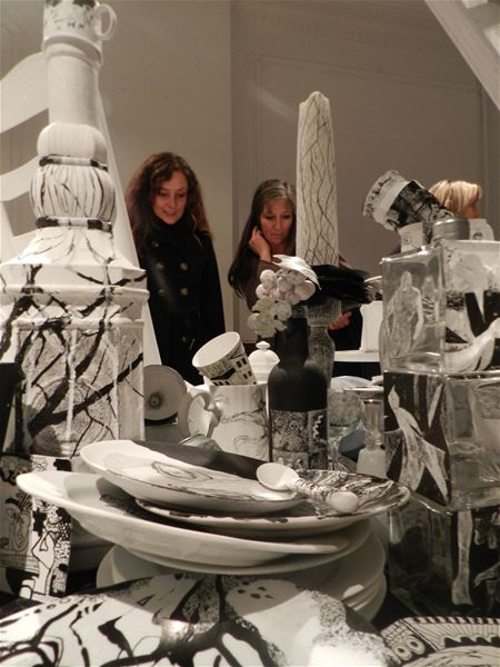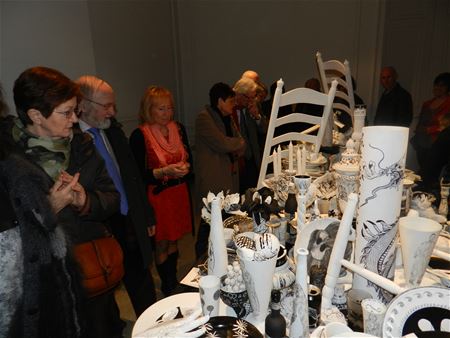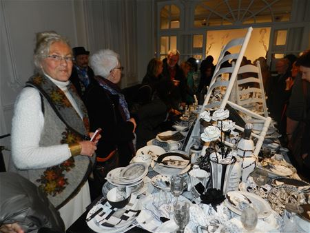 Vanavond werd in de Gemeentelijke Academie voor Beeldende Kunsten de tentoonstelling ‘De Feestkamer’ geopend. Zoals aangekondigd gaat het deze keer om werk van de studenten van de richting tekenkunst die zich door het jubileumjaar lieten inspireren om zich aan een prachtig gedecoreerde feesttafel te ‘begeven’. Het resultaat is verbazend, een georkestreerde chaos van voorwerpen die door de verfijnde zwart-wit decoraties verwijzingen naar eten, drinken, samenzijn en gezelligheid in elkaar verstrengelen tot een herinnering aan een pas afgelopen feest. Maar het feestjaar van de academie is nog lang niet afgelopen. Nog te bekijken in kasteel Meylandt tot en met 29 maart, maandag tot vrijdag van 8u30 tot 22 uur (gesloten van 17 tot 18 uur) en zaterdag van 8u30 tot 12u30.19738
