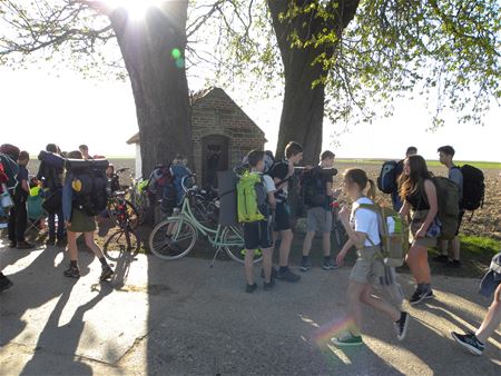 De SFC-stappers hebben vandaag een schitterende dag achter de rug en er zijn er al verschillende die een kleurtje hebben gekregen. Onderweg moest wel het nodige gedronken worden om het vochtgehalte op peil te houden. Wat het strijderstema betreft, zijn ze vandaag langs het monument in Gellik (Lanaken) doorgekomen. Dat herdenkt de plaatselijke inwoners die het leven lieten in beide wereldoorlogen. Achter het monument staat een ander monument, ter herdenking van de omgekomen bemanningsleden van twee geallieerde vliegtuigen die bij Gellik neerstortten in de Tweede Wereldoorlog. In Neerharen kwamen ze trouwens voorbij een gelijkaardig monument. De meeste dappere strijders liggen ondertussen te slapen, zodat ze uitgerust zijn voor het derde en laatste luik morgen. (foto’s Jan Dedecker)20142
