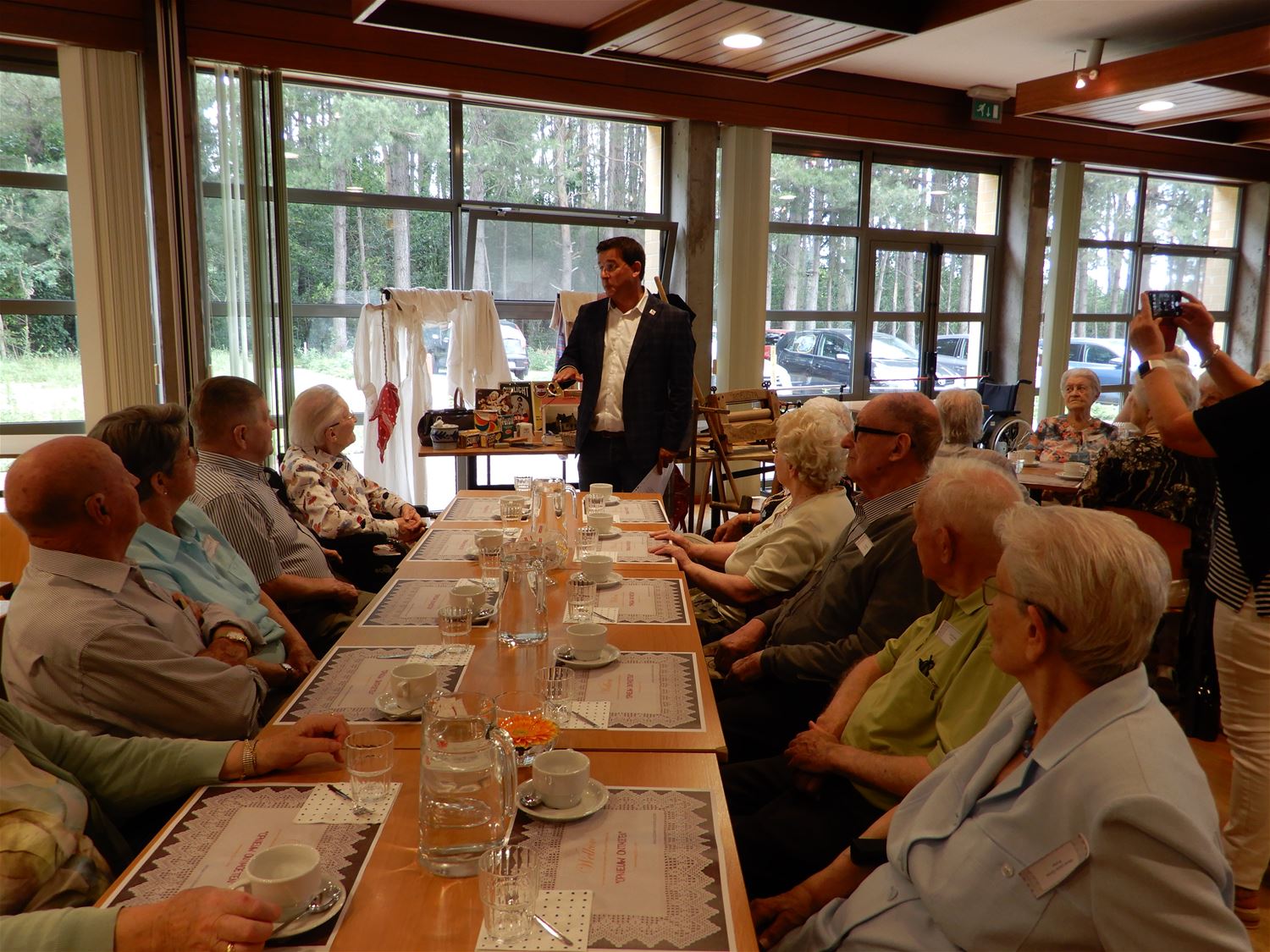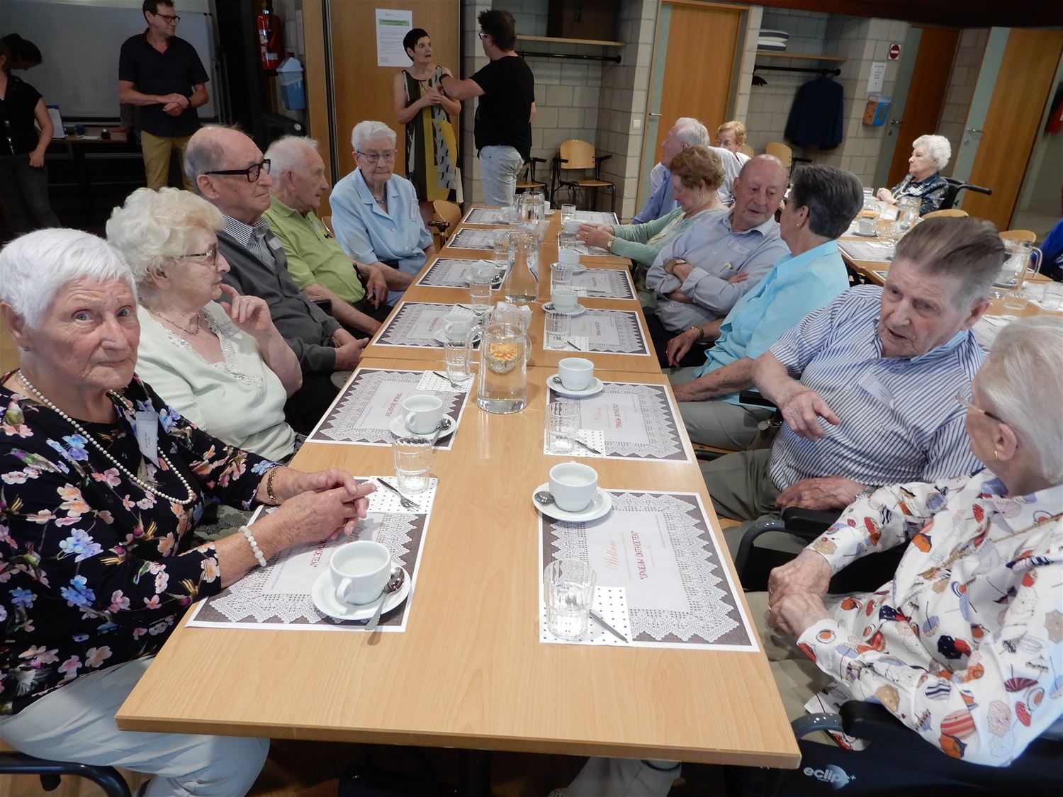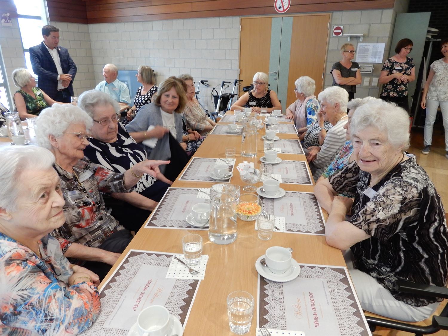 De gemeente bood vandaag het jaarlijkse feest aan de 90-jarigen aan. Zowat 45 van de 298 90-plussers van de gemeenten kwamen naar De Zandloper, wat niet hoeft te verbazen natuurlijk gezien de afnemende mobiliteit voor die leeftijdscategorie. Ze werden getrakteerd op vlaai en koffie of thee. Burgemeester Mario Borremans bracht hulde aan de vrijwilligers en mantelzorgers die voor onze oudste senioren zorgen. Voor een bijzondere attractie zorgt Tessy Pellaerts met een tentoonstelling van gebruiksvoorwerpen en 'huishoudtoestellen' uit de tijd van toen. (foto's Julien Maebe)