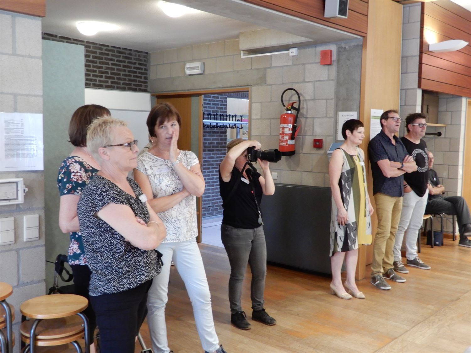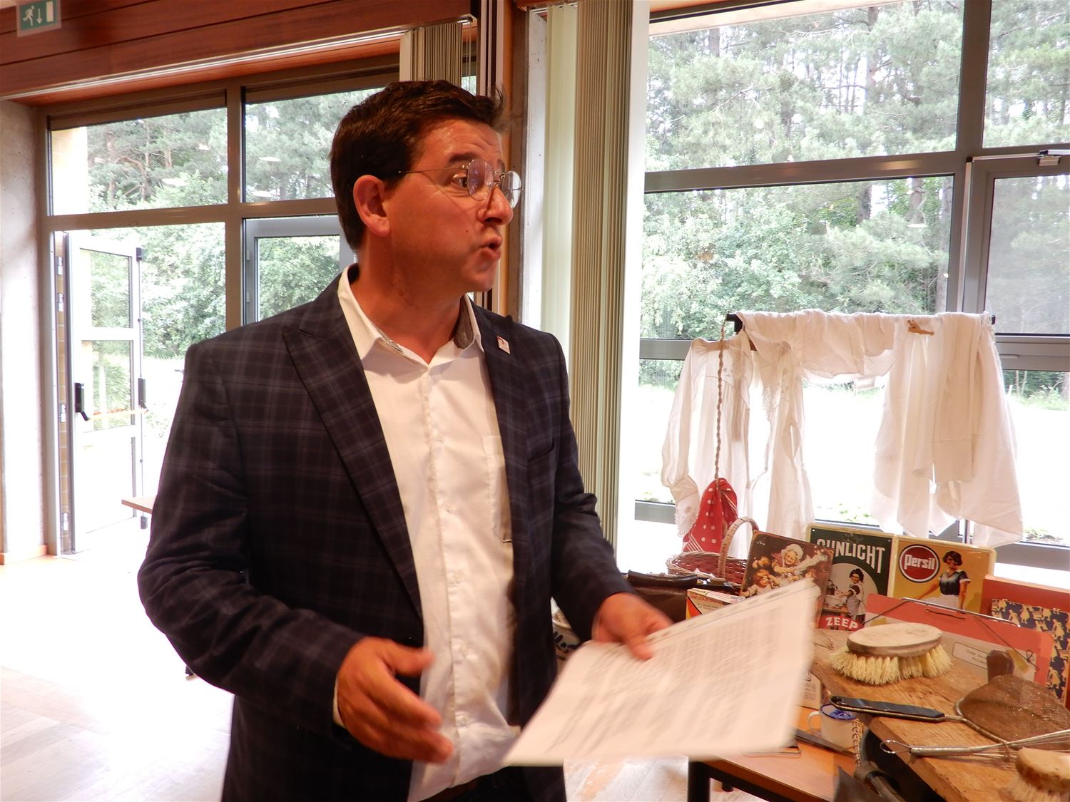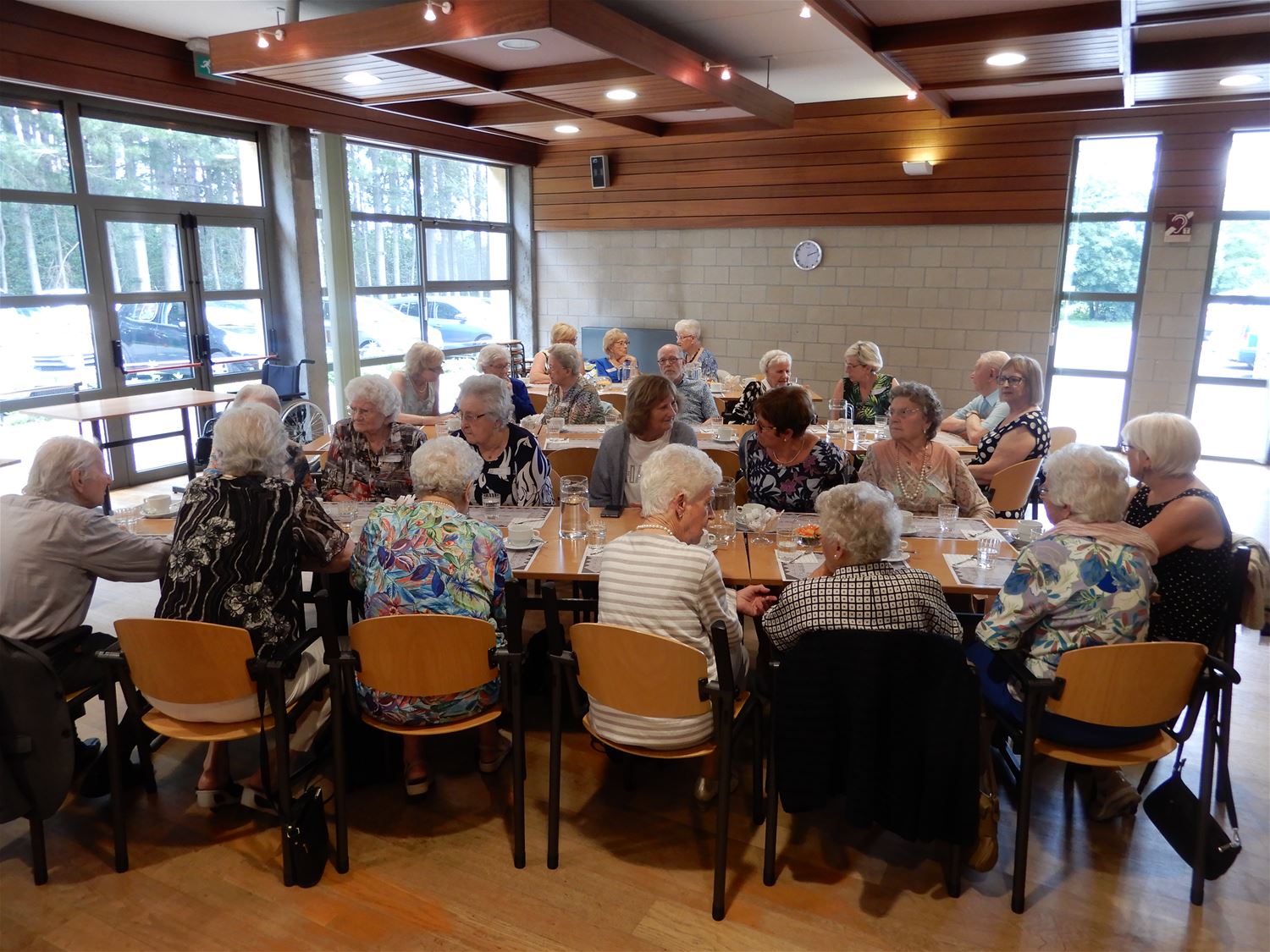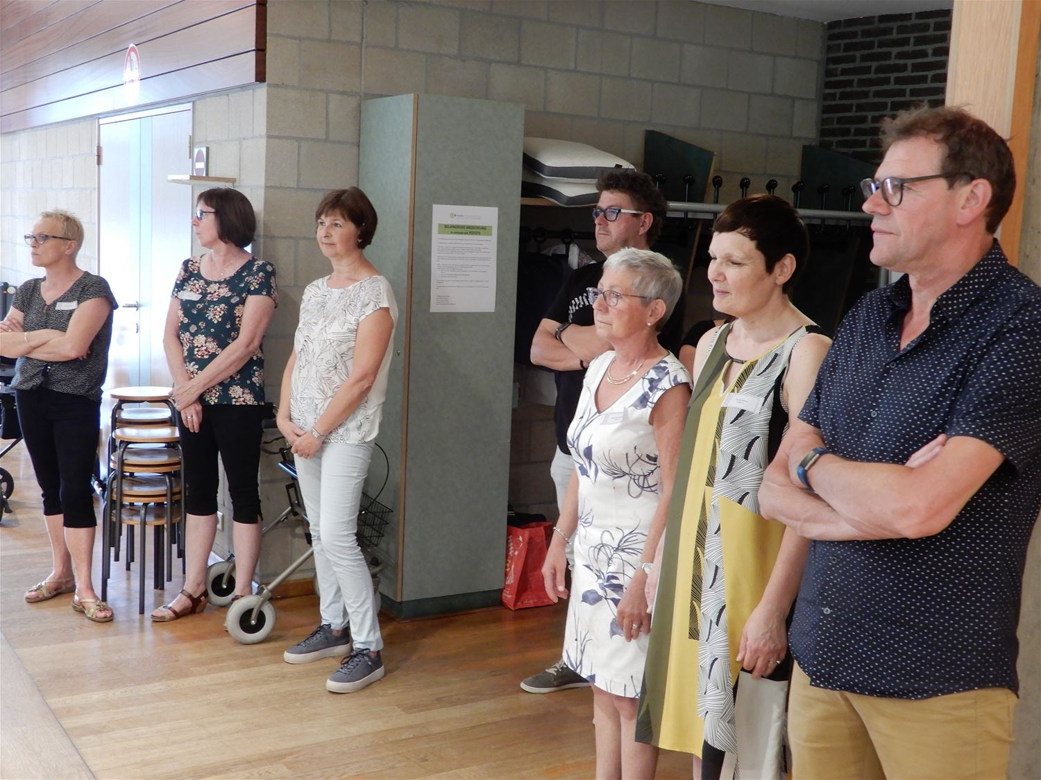 De gemeente bood vandaag het jaarlijkse feest aan de 90-jarigen aan. Zowat 45 van de 298 90-plussers van de gemeenten kwamen naar De Zandloper, wat niet hoeft te verbazen natuurlijk gezien de afnemende mobiliteit voor die leeftijdscategorie. Ze werden getrakteerd op vlaai en koffie of thee. Burgemeester Mario Borremans bracht hulde aan de vrijwilligers en mantelzorgers die voor onze oudste senioren zorgen. Voor een bijzondere attractie zorgt Tessy Pellaerts met een tentoonstelling van gebruiksvoorwerpen en 'huishoudtoestellen' uit de tijd van toen. (foto's Julien Maebe)
