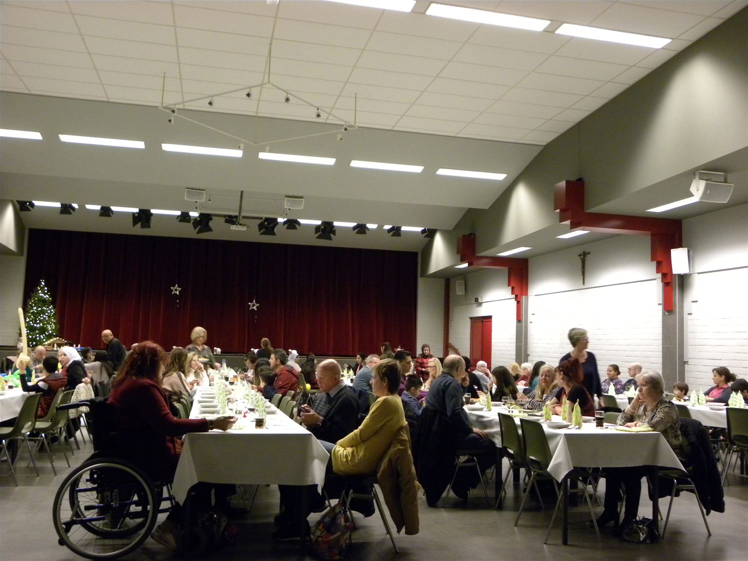 In 't Kuipershof organiseerde Sint-Vincentius vandaag het jaarlijkse Vredesfeest voor de minderbedeelden. Ongeveer 60 volwassenen en 40 kinderen genoten van een lekkere maaltijd, dank zij de vrijwilligers die de handen uit de mouwen staken. En ook de kinderen vonden de animatie die voor hen was opgezet erg leuk. Door de financiële steun vanuit de Vrije Basisschool Bolderberg werd het Vredesfeest weer een mooie ontmoeting en hart onder de riem van inwoners die het soms moeilijk hebben. (foto's Stefan Was)