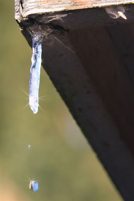 't Is al weer een tijdje geleden dat er nog ijspegels aan dakgoten hingen. Marcel Gybels legde er eentje vast die aan 't smelten was. Druppeltje per druppeltje en als je snel bent, kun je de vallende druppel ook nog kieken. (foto onder)18116