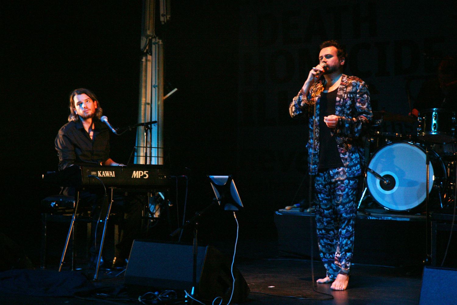 Moord en doodslag waren de centrale onderwerpen in het repertorium dat ''Murderballads Extended' zaterdagavond in Muze opvoerde. Een schare bekende muzikanten maakte duidelijk dat in de loop der voorbije decennia een heel aantal prachtige nummers aan deze toch wel morbide thema's zijn opgedragen. De bindteksten met heel wat humor, zorgden voor het nodige tegengewicht. (foto's Herman Eerdekens)51669