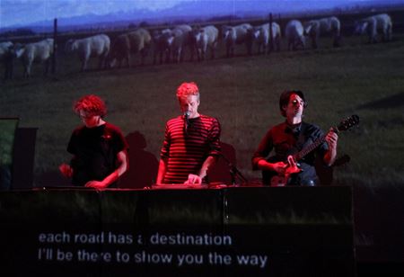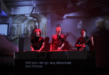 Kunstenaar Rudy Trouvé, kompaan Simon Allemeersch en Het Nieuwstedelijk fabriceerden samen de 'theaterfilm' 'Screen'. In CC Muze werd zaterdagavond een versie gebracht met Pieter Genard, Elko Blijweert en Mauro Pawlowski op het podium. (foto's Lenscollectief)43560