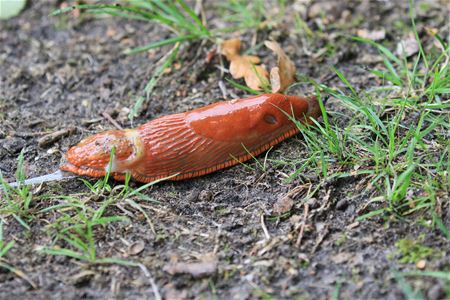 Het natte weer van de jongste dagen heeft de slakken in beweging gebracht. De bovenste lijkt wel als eerste de eindmeet te overschrijden, maar het is ons niet gemeld hoeveel dagen de race over 20 meter heeft geduurd. Het onderste exemplaar scheidt zoveel slijm af, dat het zich misschien heeft geforceerd tijdens dezelfde race. (foto's Marcel Gybels)22776