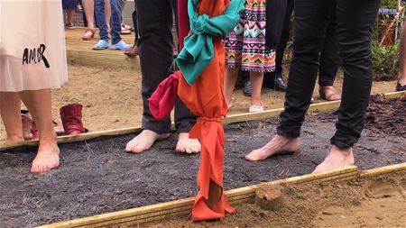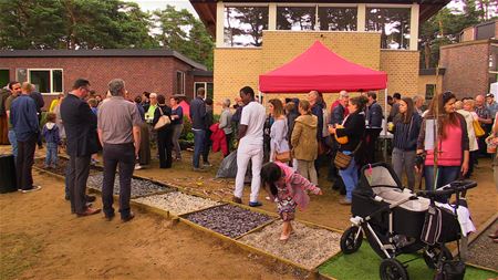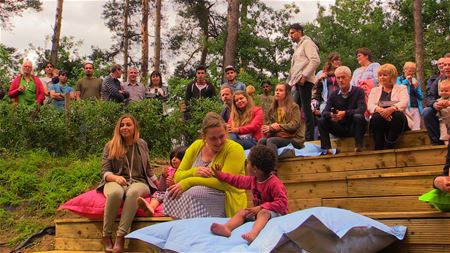 Groot feest vandaag in het Rode Kruisopvangcentrum want daar is de Dromentuin ingehuldigd. Wekenlang is er aan gewerkt door CVO De Verdieping, vrijwilligers van Artikel27/Berenhuis en de bewoners van De Bark zelf en nu kon iedereen trots op een prachtrealisatie blikken. Het gaat om een combinatie van kunst, speelse elementen, blotevoetenpad, .... kortom, een droom om in te vertoeven of naartoe te komen. De start van de festiviteiten verliep aarzelend door de felle regen, maar nadien werd het droog en kwam de zon meevieren. Zo kwam er toch nog erg veel volk afgezakt om te feesten tijdens een afterworkparty. (meer foto's van Frans Morawski)34876