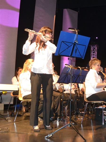 Het thema van het winterconcert van de Koninklijke Harmonie Eigen Volk in de Vierseleer zaterdagavond was ‘Thank You for the Music‘. En dat was geen toeval want het was het erebetoon aan dirigente Greet Vancluysen die na 22 jaar de stok doorgeeft aan Jan Rypens, eenn dirigent uit eigen gemeente trouwens. Presentator Bart Knockaert bracht een ludieke presentatie waarin hij de 22 jaar van Greet bij de harmonie schetste. Na de pauze gaf het jeugdorkest onder leiding van Paul Cox een optreden. Daarna was het weer aan de harmonie met solo-optredens van Kurt Bogaerts (piano), Sofie Vannitsen (klarinet) en Laura Raymaekers (dwarsfluit). Als extra verrassing kwam er uit de zaal versterking van vroegere harmonieleden. (meer foto's van Lode Beylemans)