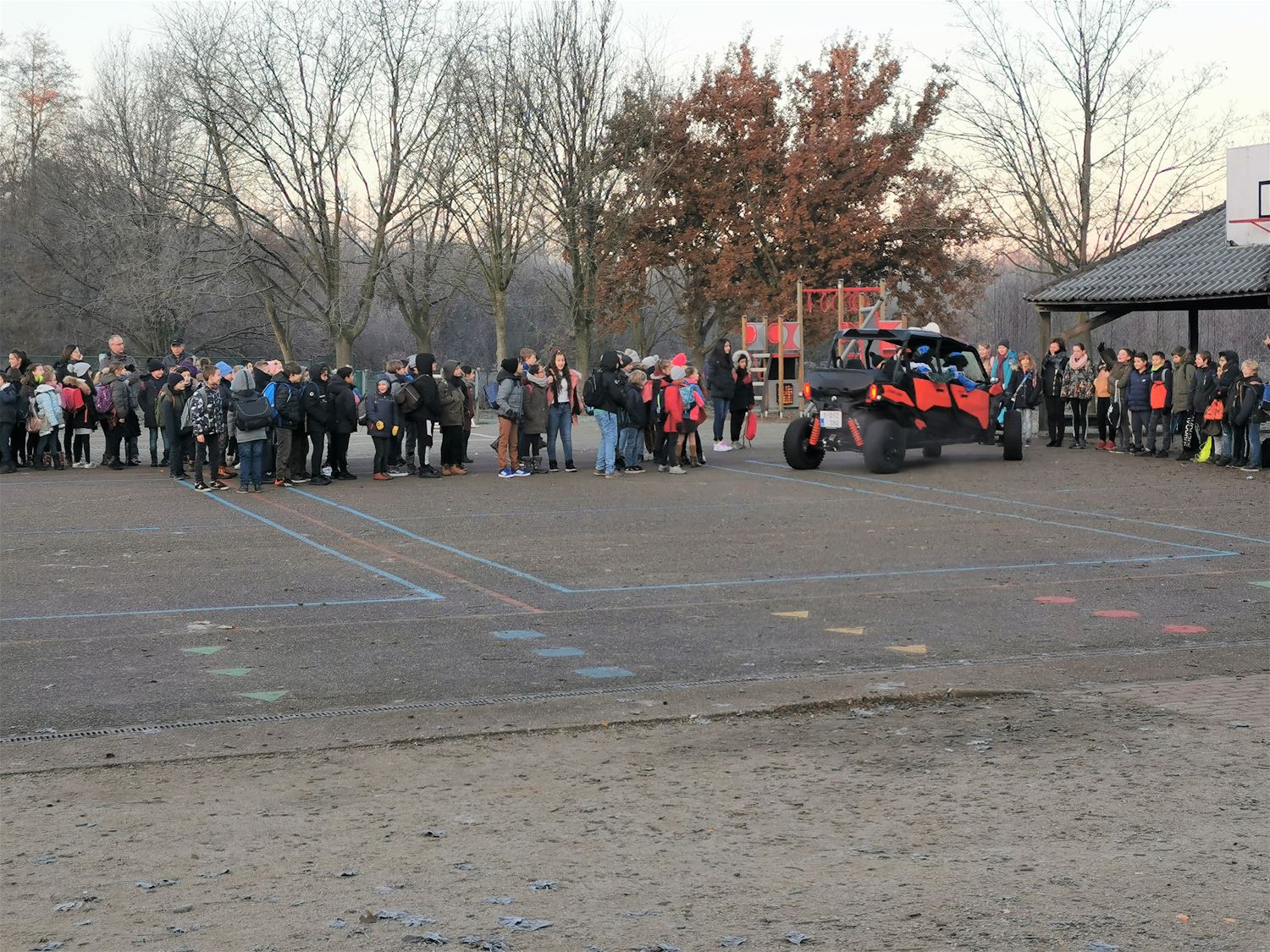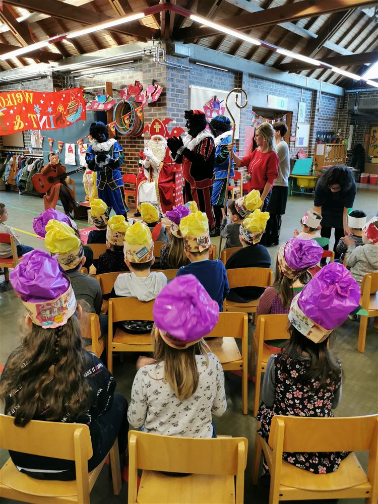 10 dagen lang heeft Sinterklaas in Beekbeemden gelogeerd. Maar hij was nooit te zien, ofwel was hij op pad ofwel lag hij te slapen omdat het 's nachts weer zo druk was geweest. Maar vandaag kregen de leerlingen hem eindelijk te zien en werd het een echt feest. (foto's An Vanoppen)