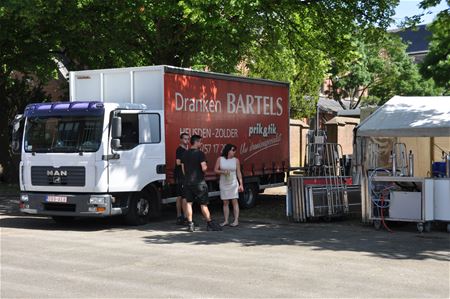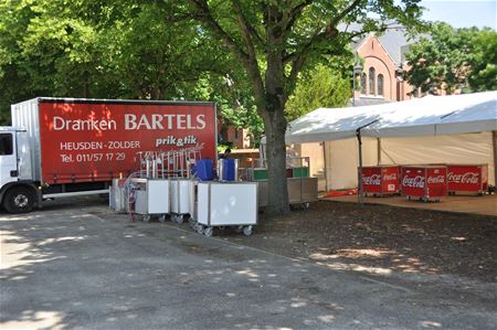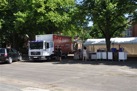De EK-Arena is grotendeels klaar om de massa voetbalsupporters te ontvangen. Het grote beeldscherm staat klaar, Infrax heeft gezorgd voor de aansluiting. Vandaag zijn ook de tapinstallaties geleverd om de dorstigen te lessen. En ook de cateringwagen voor de hongerigen is geïnstalleerd. (foto's Marina Poelmans)27594