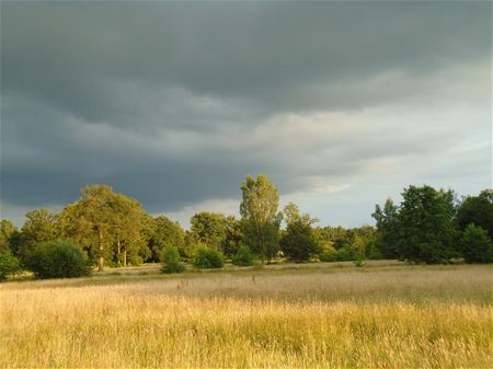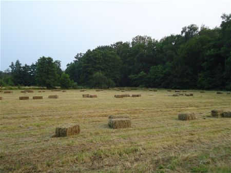Ook voor de boeren was het puffen de afgelopen dagen. Toch hebben ze van de zon en de droogte gebruik kunnen maken om te maaien, het hooi in balen te persen en vervolgens binnen te doen. (foto's Michel Gerits)11088