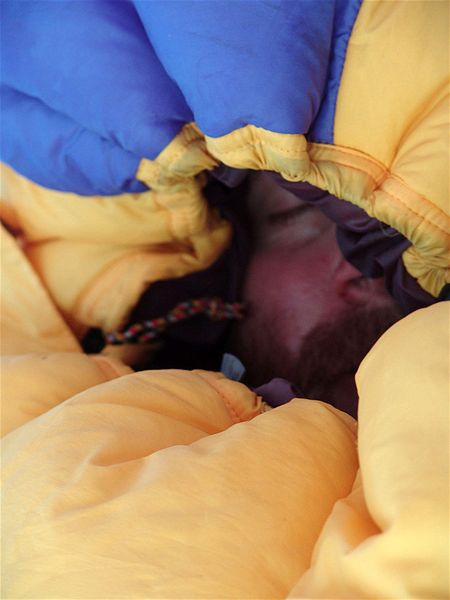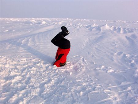 Op zijn expedities is Luc Reynders al heel wat gewoon op weervlak, maar richting Noordpool is hij door het zwaarste weer ooit gegaan. Bittere koude, sneeuw en wind die de temperaturen nog kouder deed aanvoelen dan de min 35 die dagelijkse kost was. En ook 's nachts in de tent was het nauwelijks te harden. "Ik had een slaapzak die tot -49 graden bestand was, maar ik hield mijn kleren aan, inclusief twee lange onderbroeken, een fleece, muts, tennisschoenen, ... 's Avonds vulde ik een thermos met kokend water en 's morgens was dat water volledig bevroren. Eén keer ben ik dan ook nog eens door het ijs gezakt. Toen moesten we snel handelen, de tent opzetten en meteen erin met vuurtjes erbij, want binnen de twee minuten ben je stijf bevroren. 's Morgens waren mijn spullen amper gedroogd, maar je moet ook dan weer door."7502