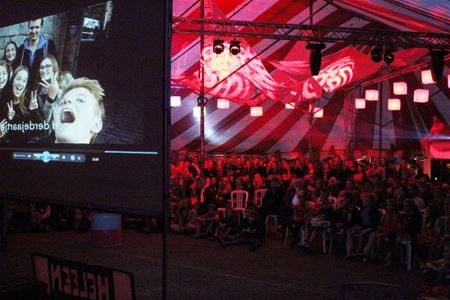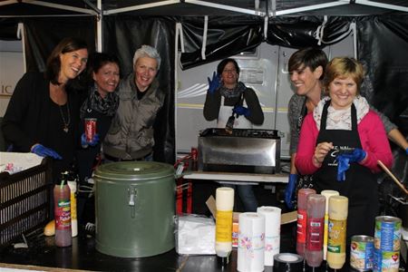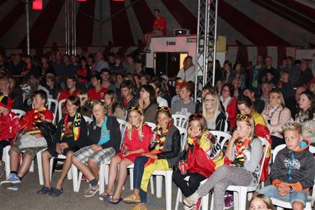 Een massa volk vanavond op de benefiet voor Heleen Dehollogne in de tent aan de Jogem. Heleen is lid van de tipteens van de Chiro-Zolder die dit voor haar organiseerden, om de kosten van haar nabehandeling na de longtransplantatiete betalen. Het werd allemaal gevierd met haar favoriete ploeg: de Rode Duivels. Eventjes werd de feestvreugde getemperd door een Bosnische goal, maar bij de 1-1 deed Fellaini de chiro langzaam ontwaken. De sfeer steeg bij de 2-1 vlak voor rust, toen werd Heleen ook in een t-shirt van de Rode Duivels gestopt. Ze heeft trouwes bovenal een boontje voor Kevin De Bruyne en ook voor Racing Genk. Het feest werd compleet na de 3-1 en het eindsignaal. Als er niet zoveel vrijdag moesten gaan werken, had het allemaal nog veel langer geduurd. (meer foto's van Tony Sempels)22566