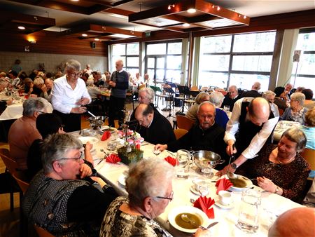 In de Zandloper schoof vanmiddag een grote groep senioren de benen onder de tafel voor het 75-Plusfeest. Dat wordt hen jaarlijks aangeboden gespreid over twee dagen. De senioren werden verwelkomd door schepen Funda Oru, daarna werd hen een feestmaal geserveerd door vrijwilligers. Hoogtepunt was het muzikale optreden van de mondharmonicaspelers, een groep 'gerijpte' muzikanten die op hun mondmuziekske populaire nummers brengen. (foto's Julien Maebe)39505