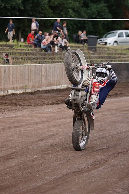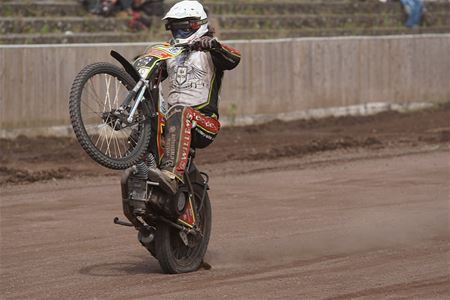 Op Helzold verzamelden vandaag de speedwayliefhebbers voor de Hells 'race. Daar komen vooral flat track machines aan de start. Die zijn anders dan de traditionele speedwaymotoren - waarvan er trouwens ook wat in actie traden. Sommigen vinden de flat trackraces minder spektakulair. Maar doordat ze vaak met veel meer motoren op de piste zijn en daardoor de rijders niet vies zijn van wat stunten, bieden ze toch een leuk kijkstuk. (meer foto's van Stephan Volders)27711