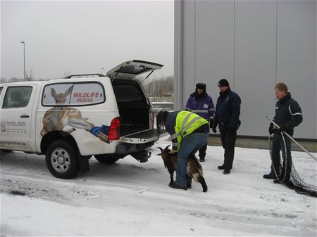 Op de multiculturele markt kom je soms de meest vreemde bezoekers tegen, zo daagde er gisteren plots een geitenbok (midden onderaan op de foto) op. Van wie of waar het dier kwam, was niet meteen duidelijk, maar het vormde wel een gevaar voor het verkeer op de Mijnwerkerslaan. De bok liet zich ook niet meteen vangen, de politie riep er dan maar het Vogel- en Zoogdierenopvangcentrum bij en de medewerkers konden het dier in een net drijven en naar rustiger oorden overbrengen. De eigenaar wordt opgespoord, misschien zit die wel ergens te bokken. Door het weer waren er voor de rest niet zoveel andere bezoekers op de markt. Eén bezoekster maakte een val op de parking en werd naar het ziekenhuis afgevoerd. Daarnaast waren er 11 overtreders die zonder kaart op een mindervalidenparking stonden. Eén rijbewijs is ingetrokken wegens roekeloos rijgedrag.6444