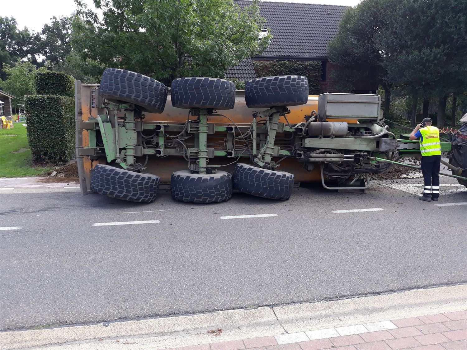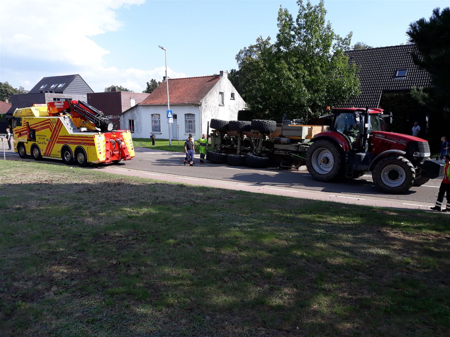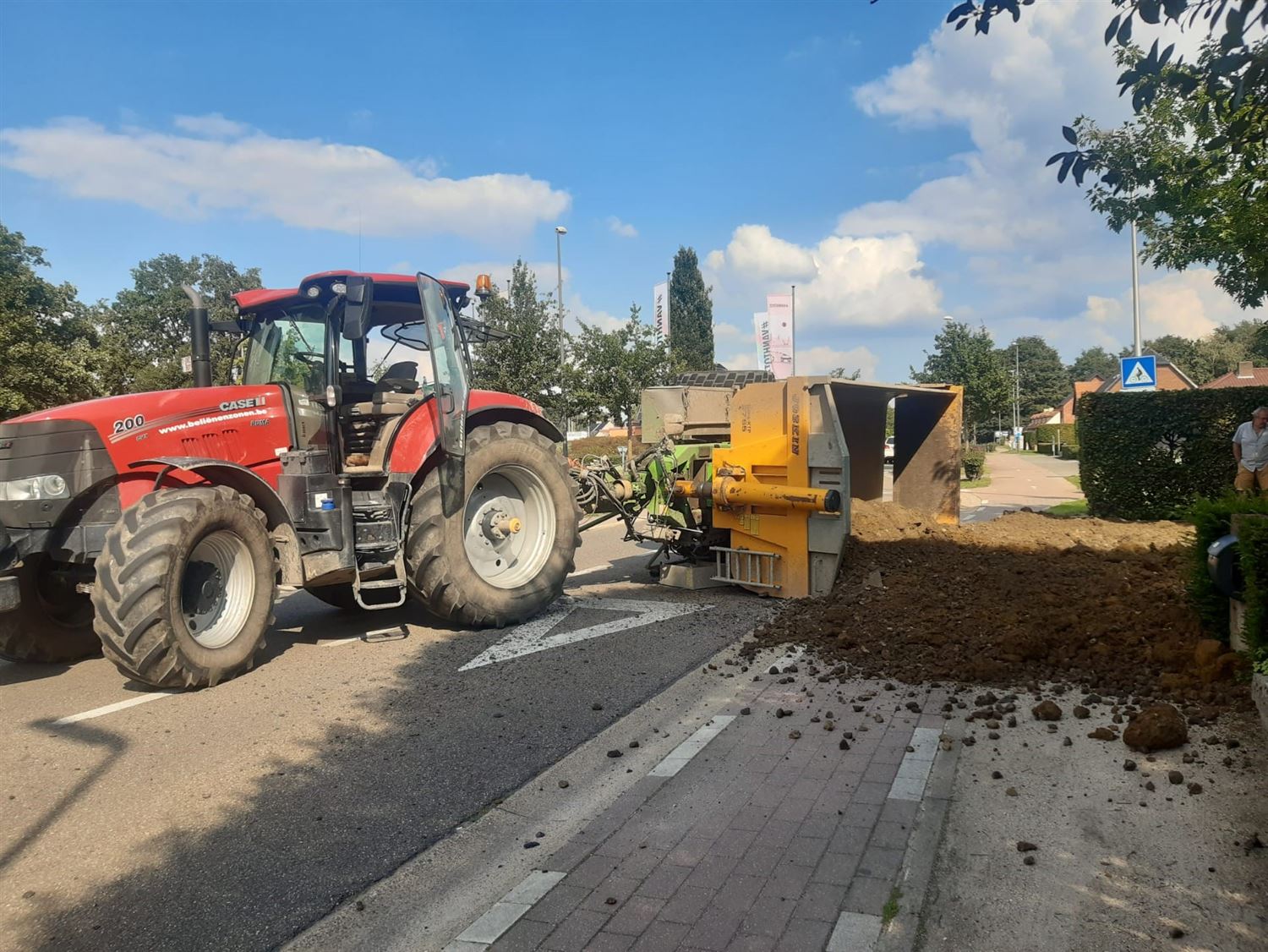 In de Langstraat is deze namiddag een aanhangwagen met grond achter een tractor gekanteld. Bij het ongeval vielen geen gewonden, maar het opruimen was wel een hele klus, ondertussen bleef de hele straat versperd. (foto's Geert Schops en Paul Smeekens)61892