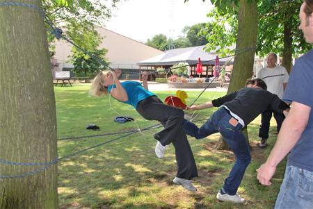 Vrijdagnamiddag draafde het gemeentepersoneel van alle mogelijke diensten in groepjes door Heusden-Centrum. Ze hadden hun jaarlijkse sportnamiddag en de mensen van de sportdienst-sportraad hadden een reeks proeven uitgewerkt die in ploegverband moesten aangevat worden: kruipen door een spinnenweb, bakken stapelen, gokart rijden, fotomemory, een vervaarlijk boomstamspel, ... Daarbij werd streng de chronometer gehanteerd. Het ging daarbij niet alleen om de proeven op zich, maar ook om de teamspirit te versterken. Wedden dat je dat maandagochtend merkt als je het gemeentehuis binnenstapt ... hoewel een pijnlijke grimas door geteisterde spieren links of rechts niet uit te sluiten valt.2702