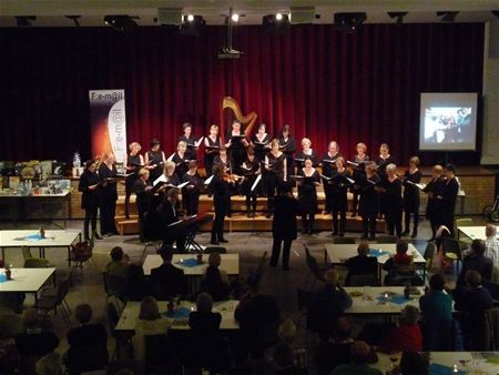 De vzw Dakbhanga heeft het afgelopen weekend een succesvol concert georganiseerd. De opkomst was goed, en het vocaal ensemble F:e-m il, onder leiding van Nadia Loenders gaf een schitterend concert. Er waren opvallende performances van de jonge harpiste Roos Bex, Fran de Cock op viool en Frans Schockaert die het geheel op piano begeleidde. De avond leverde alleszins eens steuntje op voor de schooltjes in Bangladesh. Ook tijdens het jaar kun je de vzw Dakbhanga steunen. (foto’s Jan Theuwissen)21260