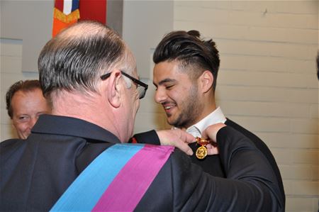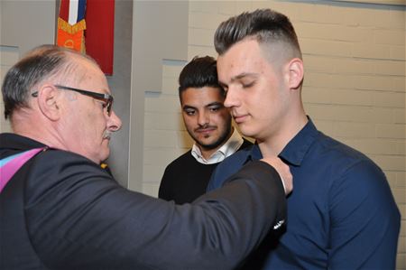 Tijdens de uitreiking van de medailles en eretekens was er bijzondere aandacht voor Kurt Kaymakoglu en Hamit Erol. Beide jongens zijn leerling aan de richting veiligheidsberoepen van het Sint-Franciscuscollege. Zij deden tijdens de wereldkampioenschappen veldrijden hun stage langs het parcours toen een man er een hartstilstand kreeg. Ze grepen meteen in, reanimeerden de man en zorgden dat de hulpdiensten ter plaatse kwamen. Voor dit levensreddend gebaar kregen beiden vandaag de gouden medaille van moed en zelfopoffering. (foto's Julien Maebe)27439