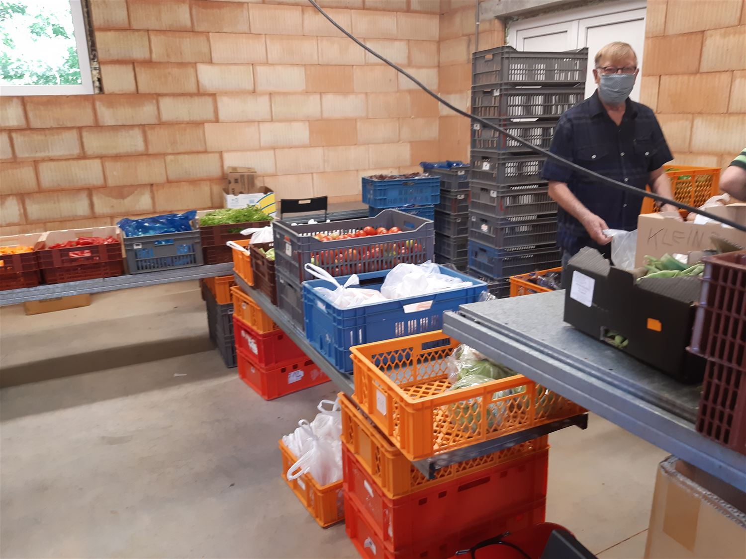 Sint-Vincentius organiseerde deze voormiddag een groentebedeling voor zijn 'cliënten'. Het nieuwe magazijn deed daarbij dienst als marktplaats. De verse producten waren gratis afgehaald bij de veiling van BelOrta in St.-Katelijne Waver. (foto's Stefan Was)59445