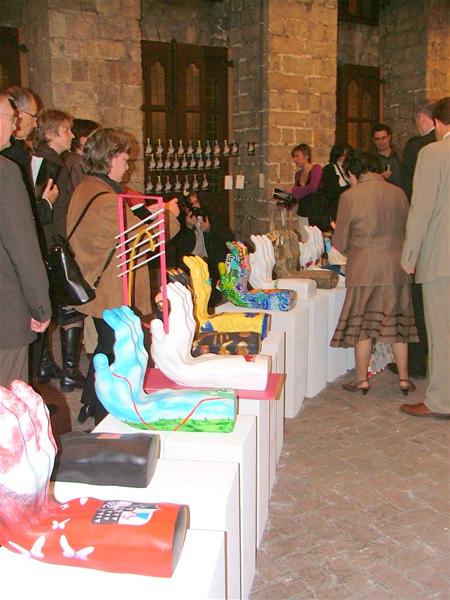 Zoals aangekondigd is in Ieper de vredestentoonstelling geopend met de 80 gipsen handen die in evenveel Vlaamse steden en gemeenten door kunstenaars zijn bewerkt. Heel wat belangstellenden kwamen een kijkje nemen en zelfs een groene madam als Mieke Vogels moest toegeven dat de hand van Katrien Moons van de academie van Heusden-Zolder de mooiste was. Het schijnt dat de andere aanwezige gemeenten er allemaal een beetje groen van werden.2322