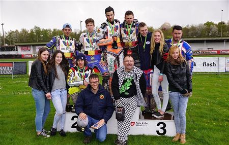 De Team Speedway op Helzold had vandaag uiteraard weer heel wat spektakel in petto. De Helzoldstars namen het op tegen Team Nederland. De internationals moesten 15 heats betwisten, met in de laatste de snelste rijders tegen elkaar op de piste. En na een harde strijd om in die finale te geraken waren het de Helzoldstars die domineerden want Daniel Gappmaier haalde het voor zijn teamgenoot Romano Hummel. Ze totaliseerden daarmee voldoende punten voor hun team om Nederland met Henry van der Steen en Sjoerd Rozenberg achter zich te houden. Bij de B-rijders stonden Willy Kennis en Enzo Dubernard Van Helzolder alleen in de finalemanche, de Nederlandse concurrenten starten niet meer, en zo lang de overwinning voor het grijpen. (meer foto's van Stephan Volders) 25086