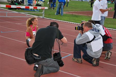 De Nacht van de Atletiek blijft een gezellig gebeuren waar Jan en alleman naartoe komt, alleen was er dit jaar wat minder volk dan vorig jaar en ook de sfeer was iets minder. Wellicht heeft dat te maken met het wegvallen van onze twee topdames Kim Gevaert en Tia Hellebaut. Ze waren er nochtans alletwee: Tia duwde het koetske voor zich uit en Kim met superdikke buik mocht als interviewster van Sporza haar ex-collega's als Elodie Ouedraogo, de Borlées of Van Branteghem voor de camera halen. Vooral in de nummers met de Belgen werd er nogal fiks gesupporterd, onder meer voor streekloper Krijn Van Koolwijck hoewel hem dat niet aan het begeerde WK-ticket heeft geholpen. Voor de rest waren er een 50-tal journalisten, op enkele Nederlanders na, allemaal Belgen, veel VIPS - van wie sommigen geen atleet hebben gezien - en veel jonge atleten die zich in de namiddag al de ziel uit het lijf liepen en die we hopelijk over enkele jaren bij de groten te zien krijgen. Om tien uur zat het hoofdprogramma erop, een groot deel van het publiek had het toen al voor bekeken gehouden.2925