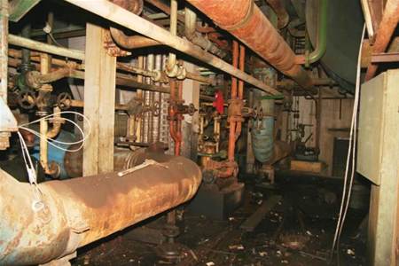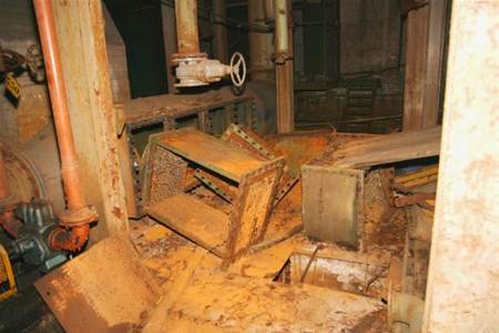 Alle machines samen in het ophaalgebouw vormen honderden ton ijzer en staal, je zou er wellicht behoorlijk wat geld voor krijgen. Maar doordat ze samen met het gebouw beschermd zijn, moeten ze bewaard blijven en in de mate van het mogelijke gerestaureerd. Om te beginnen zal een poetsbeurt nodig zijn, want alles ligt nu al 17 jaar stil. UPDATE De drie groene vaten hierboven bevatten de voorraad warm water voor de badzaal van de ondergronders. Zoals eerder gemeld werden de vaten verwarmd door het koelwater van de compressor. Er werd ook nog chloor aan toegevoegd.3511