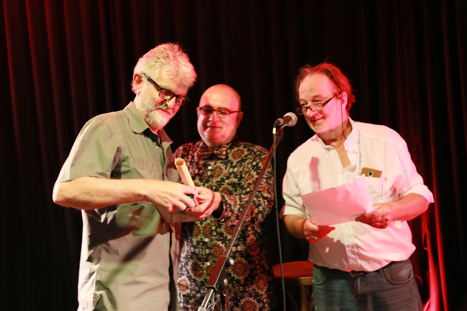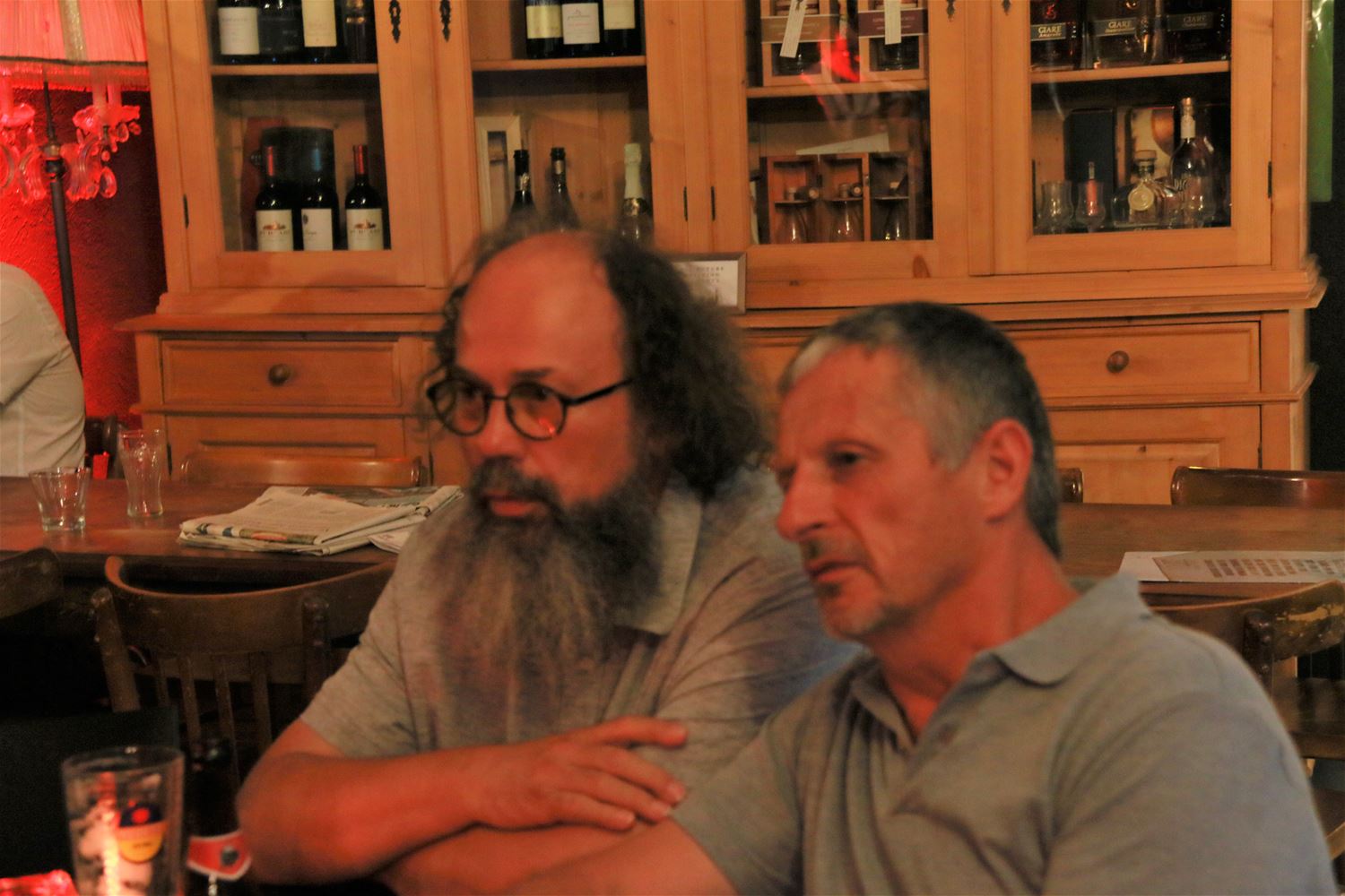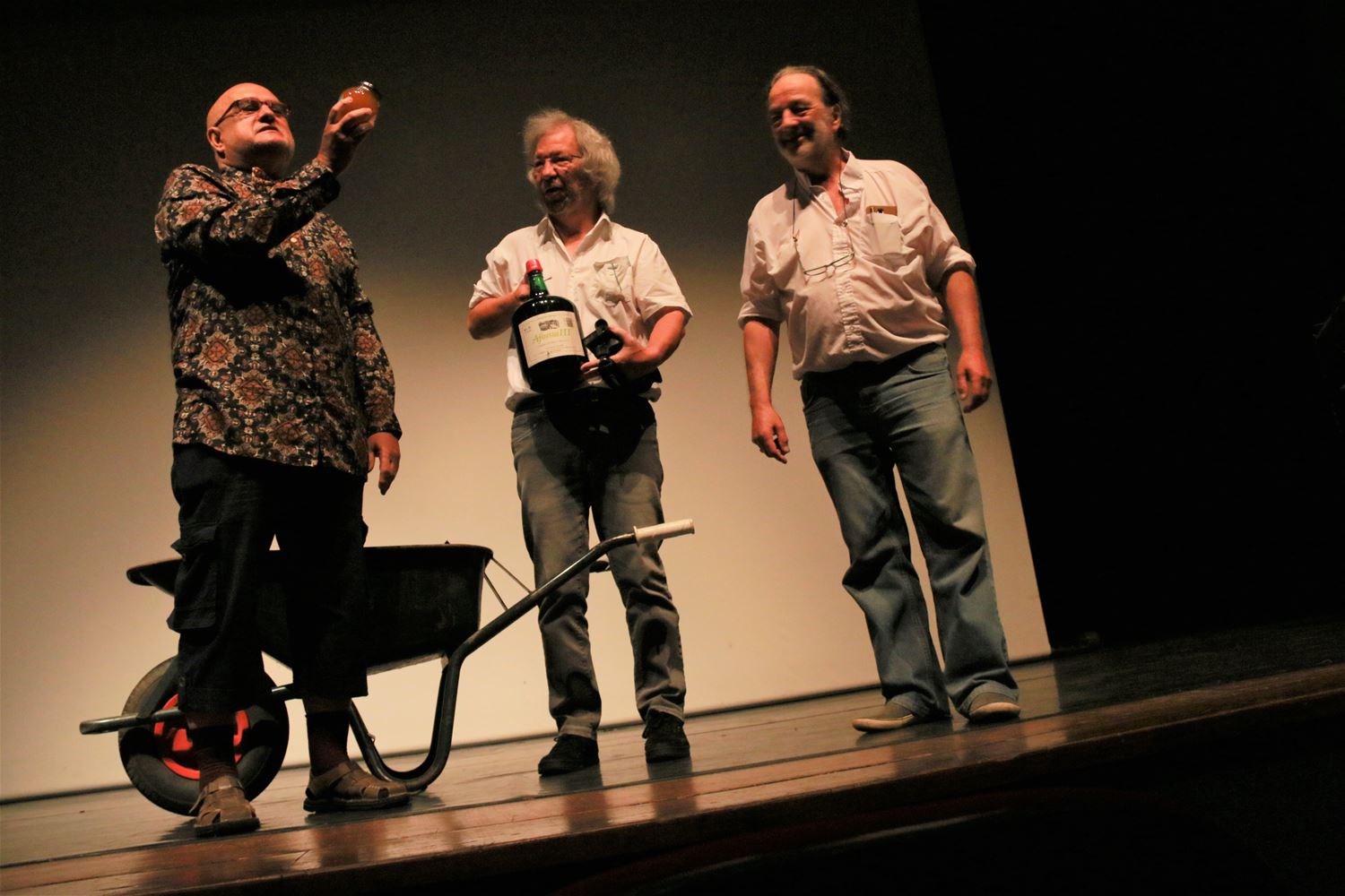 Met de Left Hand Georges Art Project werd afscheid genomen van de officiële activiteiten in het huidige cultuurcentrum Muze. Een kleine 150 mensen zaten in de schouwburg tegen de start van de wereldpremière van de roadmovie ‘Back Home’. Hilarische start overigens want eerst kwamen regisseur Paulo Filippe en ster van de avond Georges Veltjen op het podium met elk een volle kruiwagen: ze hadden voor elke aanwezige heerlijke Portugese wijn meegebracht. De film is hard, soms humoristisch maar vooral echt. Hij toont Georges op een manier zoals weinigen hem kennen, het romantische beeld van de straatmuzikant krijgt in deze roadmovie een enigszins andere invulling. Vooral de vriendschapsbanden die hij in Portugal opbouwde, komen aan bod.