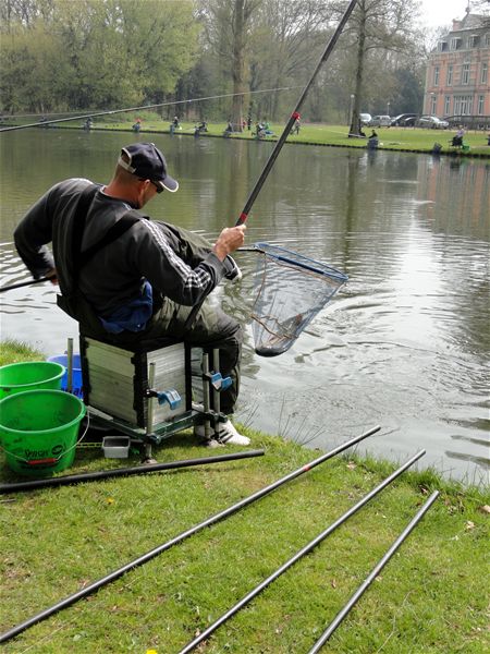 Aan de visvijver van Meylandt had de eerste hengelwedstrijd van het seizoen plaats. Terwijl een pas getrouwd koppeltje (foto hiernaast zijn dag van zijn leven een romantisch beeld probeert samen te vatten, concentreert een visser zich ongestoord op hengel en worm. Een reiger (foto rechts onder) neemt het dan weer niet dat hij uitgesloten is van de wedstrijd, en wacht zijn kans af om toch nog buit te maken. (foto's René Bosmans)10329