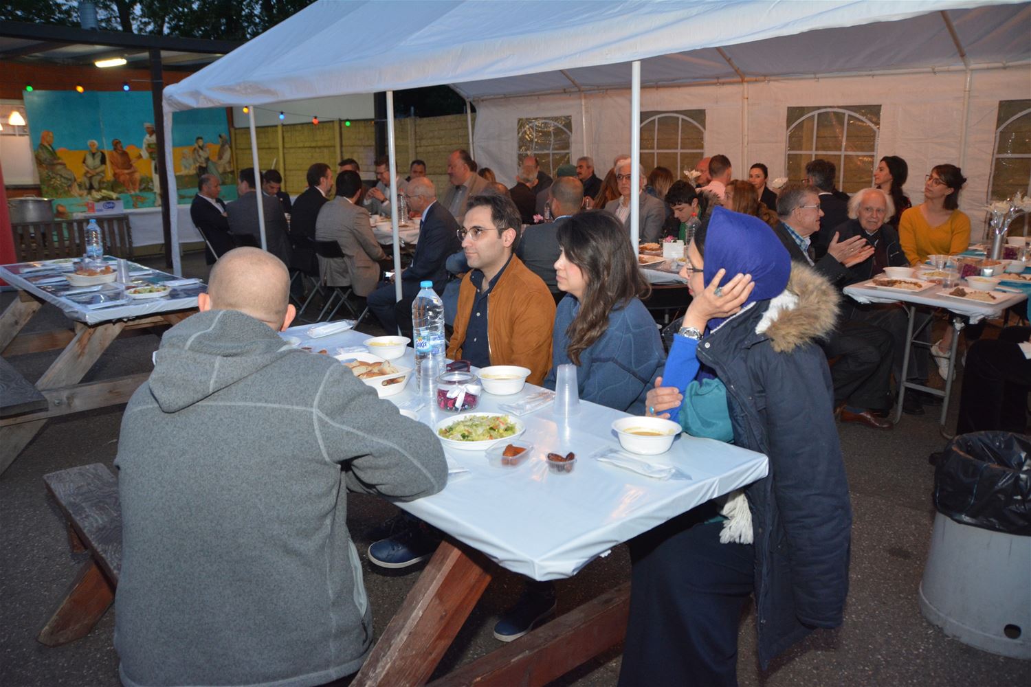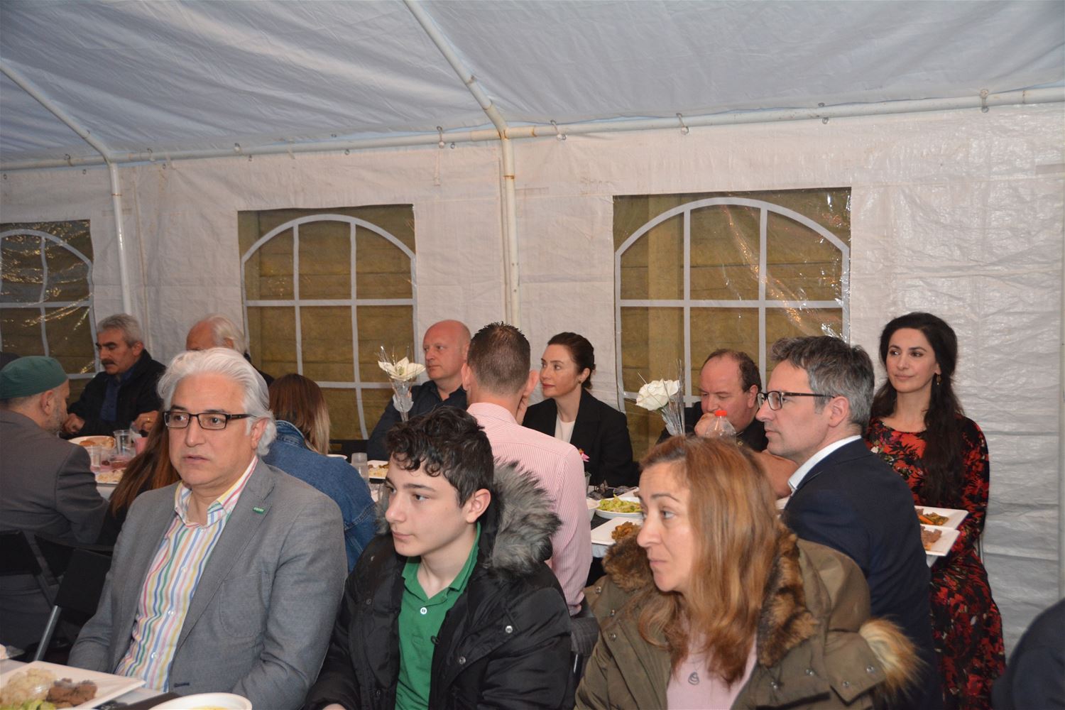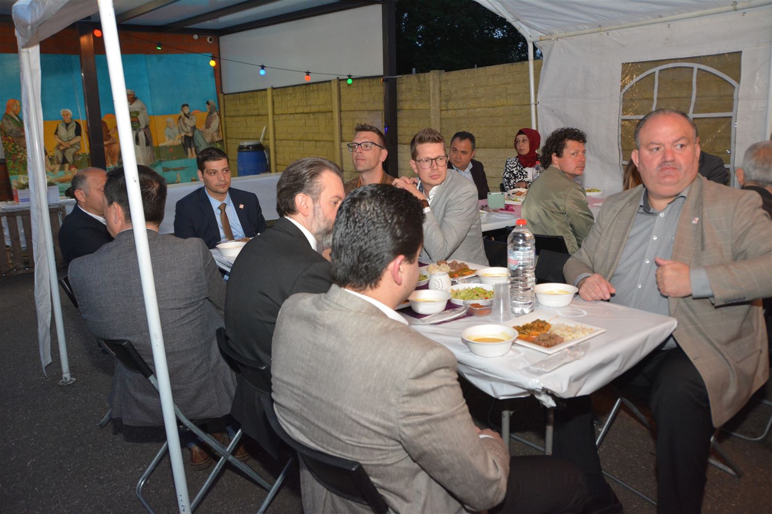 In de Sultan Ahmet Moskee was zaterdag veel volk opgedaagd voorde iftar-avond. Tijdens de Ramadan houdt de organisatie elke vrijdag- en zaterdagavond zo’n iftar waarop ook heel wat niet-moslims uitgenodigd. Het is daarbij ook een traditie dat de vluchtelingen uit de Bark worden uitgenodigd en opgehaald. Vanavond waren heel wat politici, vertegenwoordigers van de werkgroep interreligieuze dialoog en de internationale URI aanwezig. Voorzitter Yusuf Birinci van de vzw verwelkomde iedereen en belichtte de betekenis van de Ramadan, daarin aangevuld door Mehmet Ustun, voorzitter van de moskee en de moslim executieve. Omer Korkmaz sprak een gebed uit. Verder waren er nog korte speeches door burgemeester Thomas Vints van Beringen en schepen Engin Özdemir van Heusden-Zolder, die ervoor pleitte om ook buiten de Ramadan te verbroederen tussen verschillende geloofsgemeenschappen.46831