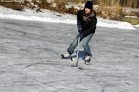 Ijshockey en schaatspret op vijvers