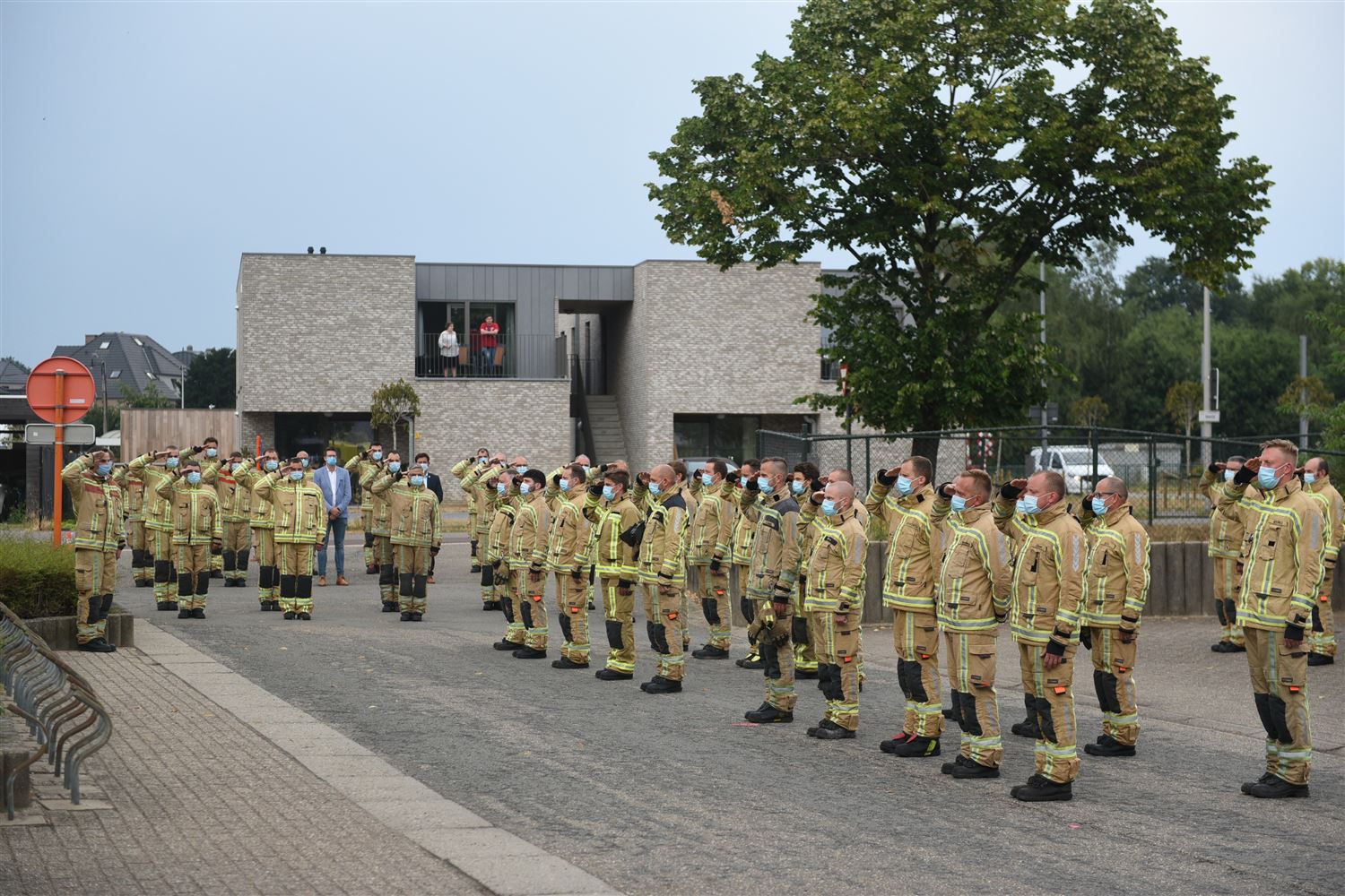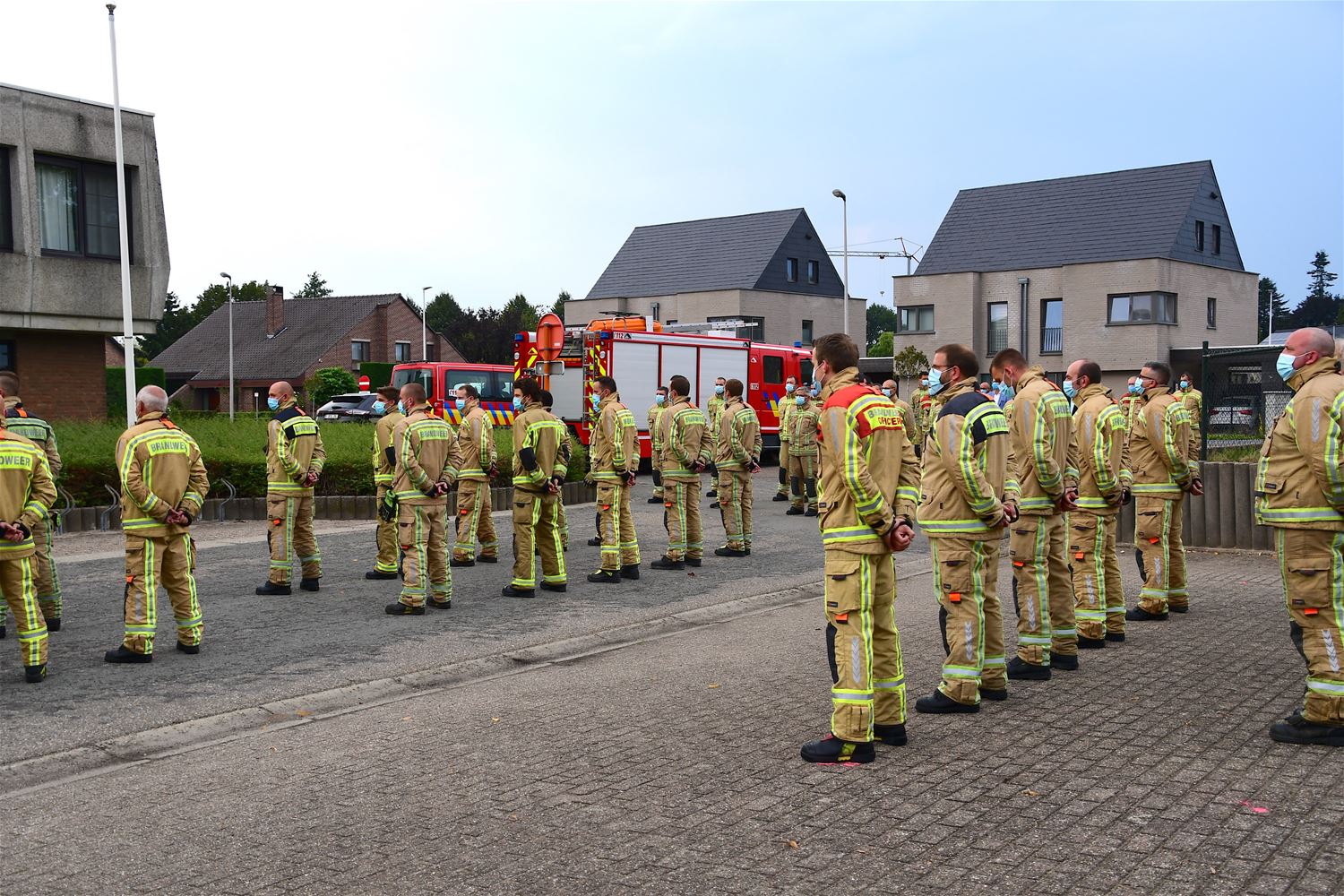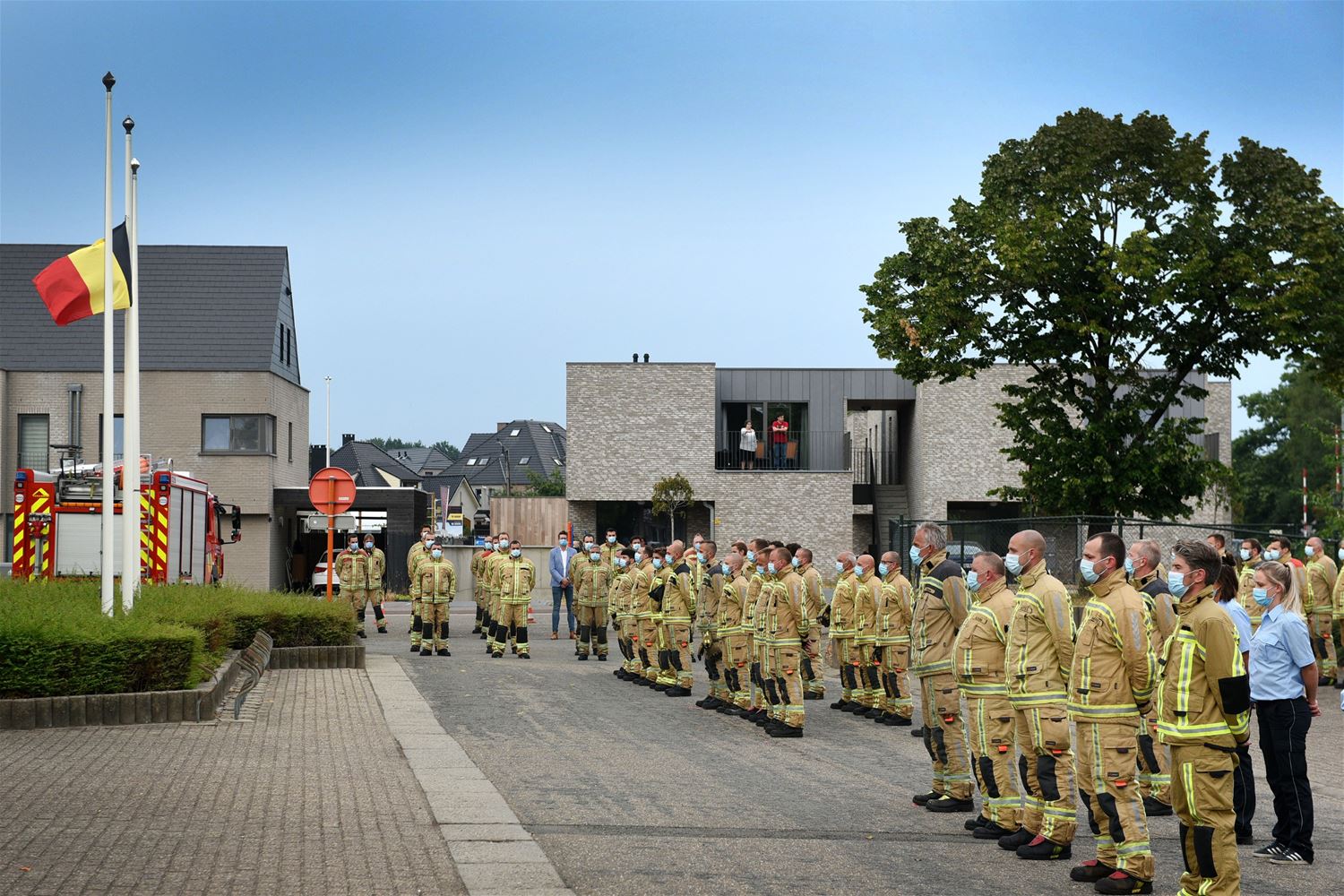 Tijdens een sobere maar indrukwekkende plechtigheid heeft het brandweerkorps vanavond om 19 uur de brandramp van een jaar geleden in Beringen herdacht en hulde gebracht aan de omgekomen collega's Chris Medo en Benni Smulders. De brandweermannen en het medisch kader vormden - coronaproof - een erehaag op de parking voor de kazerne waar ze vlaggengroet brachten, een minuut stilte hielden waarna voor het eerst sinds lang de sirene weer loeide over Heusden-Zolder. Ook de burgemeesters van Heusden-Zolder en Beringen woonden de plechtigheid bij. Na de korte maar emotionele herdenking gingen de brandweermannen naar het kerkhof om daar een groet te brengen aan de graven. Ze werden voorafgegaan door interventiewagen Alfa 22, waar de omgekomen brandweermannen voor het laatst mee uitrukten, maar niet meer mee terugkeerden. In zowat het hele land hebben brandweerkorpsen vanavond een minuut stilte gehouden. (foto's Ronny Vanthienen en Eline Vanhamel)60686