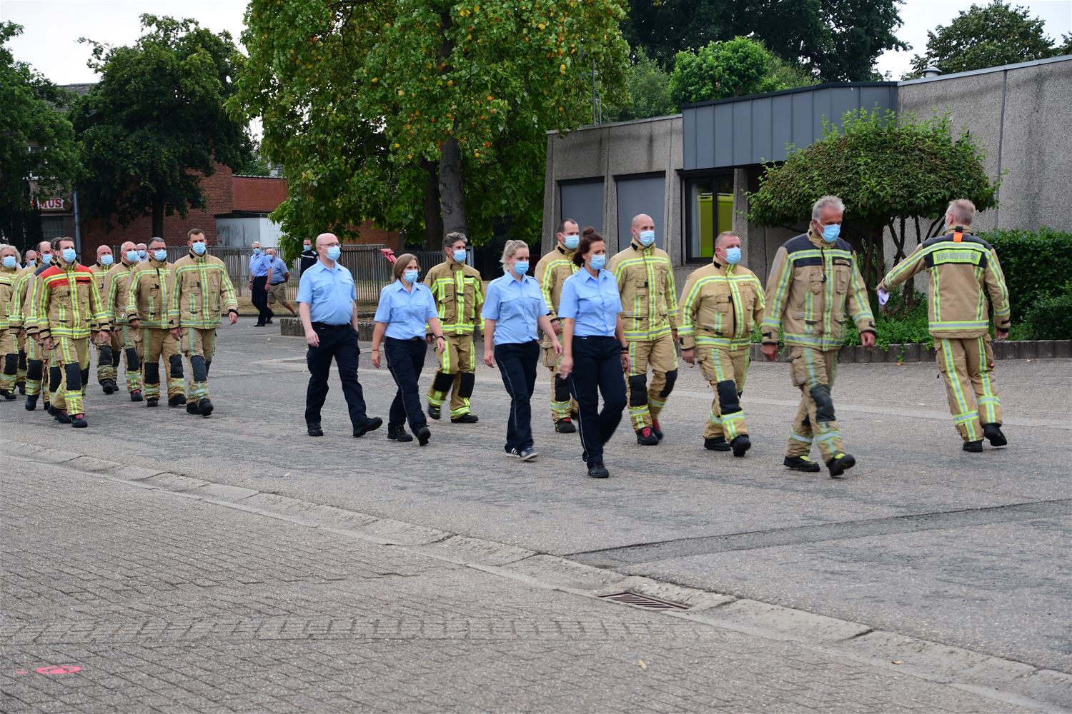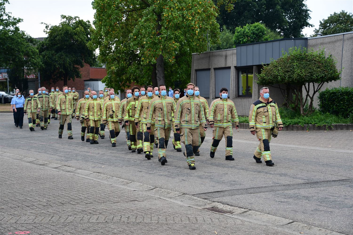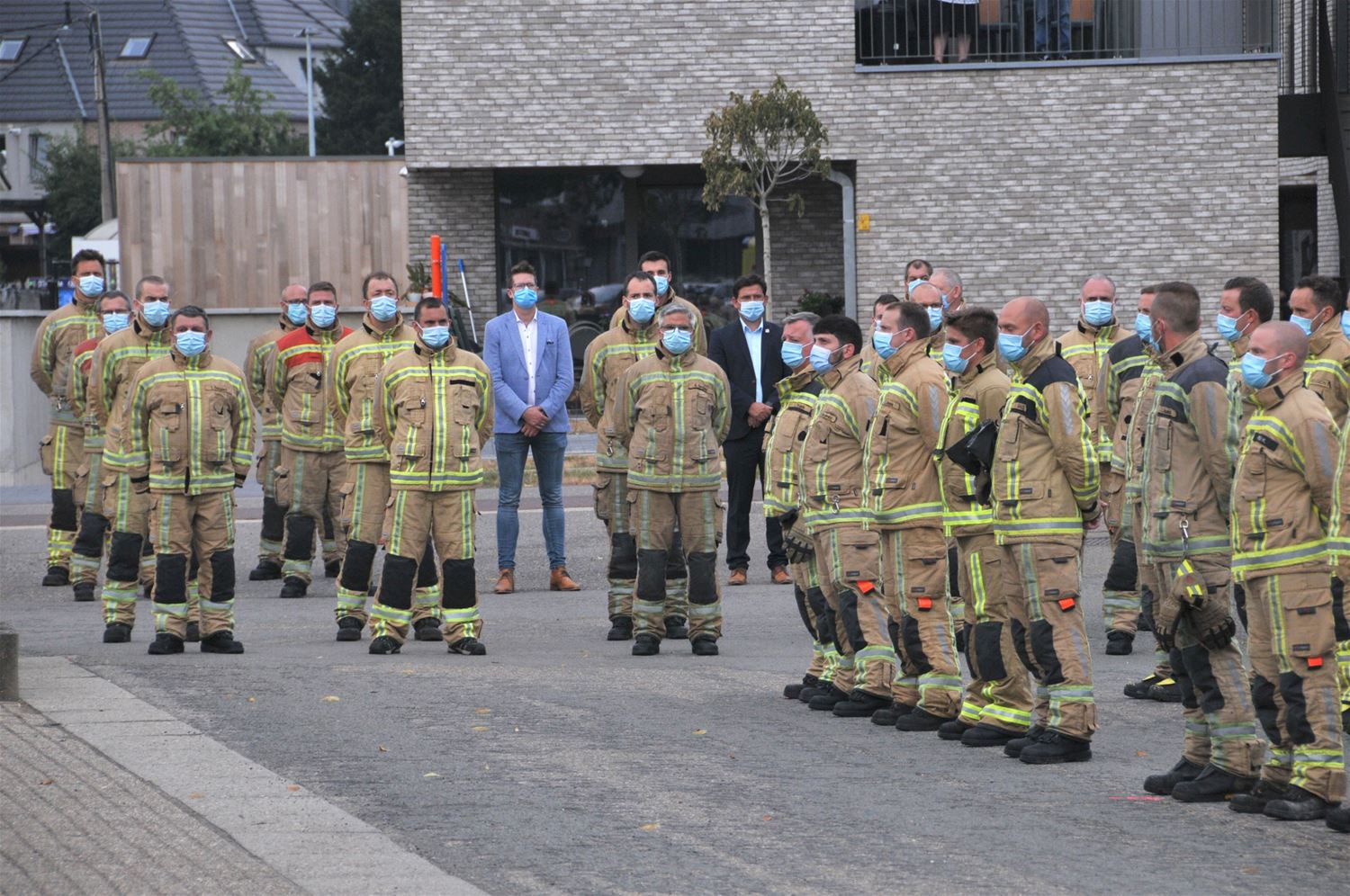 Tijdens een sobere maar indrukwekkende plechtigheid heeft het brandweerkorps vanavond om 19 uur de brandramp van een jaar geleden in Beringen herdacht en hulde gebracht aan de omgekomen collega's Chris Medo en Benni Smulders. De brandweermannen en het medisch kader vormden - coronaproof - een erehaag op de parking voor de kazerne waar ze vlaggengroet brachten, een minuut stilte hielden waarna voor het eerst sinds lang de sirene weer loeide over Heusden-Zolder. Ook de burgemeesters van Heusden-Zolder en Beringen woonden de plechtigheid bij. Na de korte maar emotionele herdenking gingen de brandweermannen naar het kerkhof om daar een groet te brengen aan de graven. Ze werden voorafgegaan door interventiewagen Alfa 22, waar de omgekomen brandweermannen voor het laatst mee uitrukten, maar niet meer mee terugkeerden. In zowat het hele land hebben brandweerkorpsen vanavond een minuut stilte gehouden. (foto's Ronny Vanthienen en Eline Vanhamel)60686