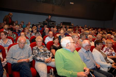 In een volgelopen Muzeschouwburg trad Jo Vally vanmiddag op voor de senioren van Heusden-Zolder. De charmezanger staat 40 jaar op de planken en bracht een repertoire dat een staalkaartje biedt uit van die lange carrière. Zijn ervaren band ondersteunde de nummers akoestisch. Vooral zijn hits sloegen meteen aan bij het publiek, dat genoot van een leuke namiddag. (foto's Marina Poelmans)43366