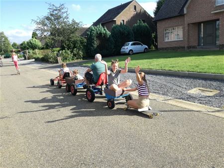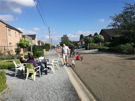 De kinderen van de Padbroekweg in Eversel konden zich uitleven in hun speelstraat. Maar euh ... zo te zien genoten ook de volwassenen van hun nieuwe speelterrein: terraske op straat, schremke schieten, ... ze zagen het helemaal zitten. (foto's Rita Vanhove)34761